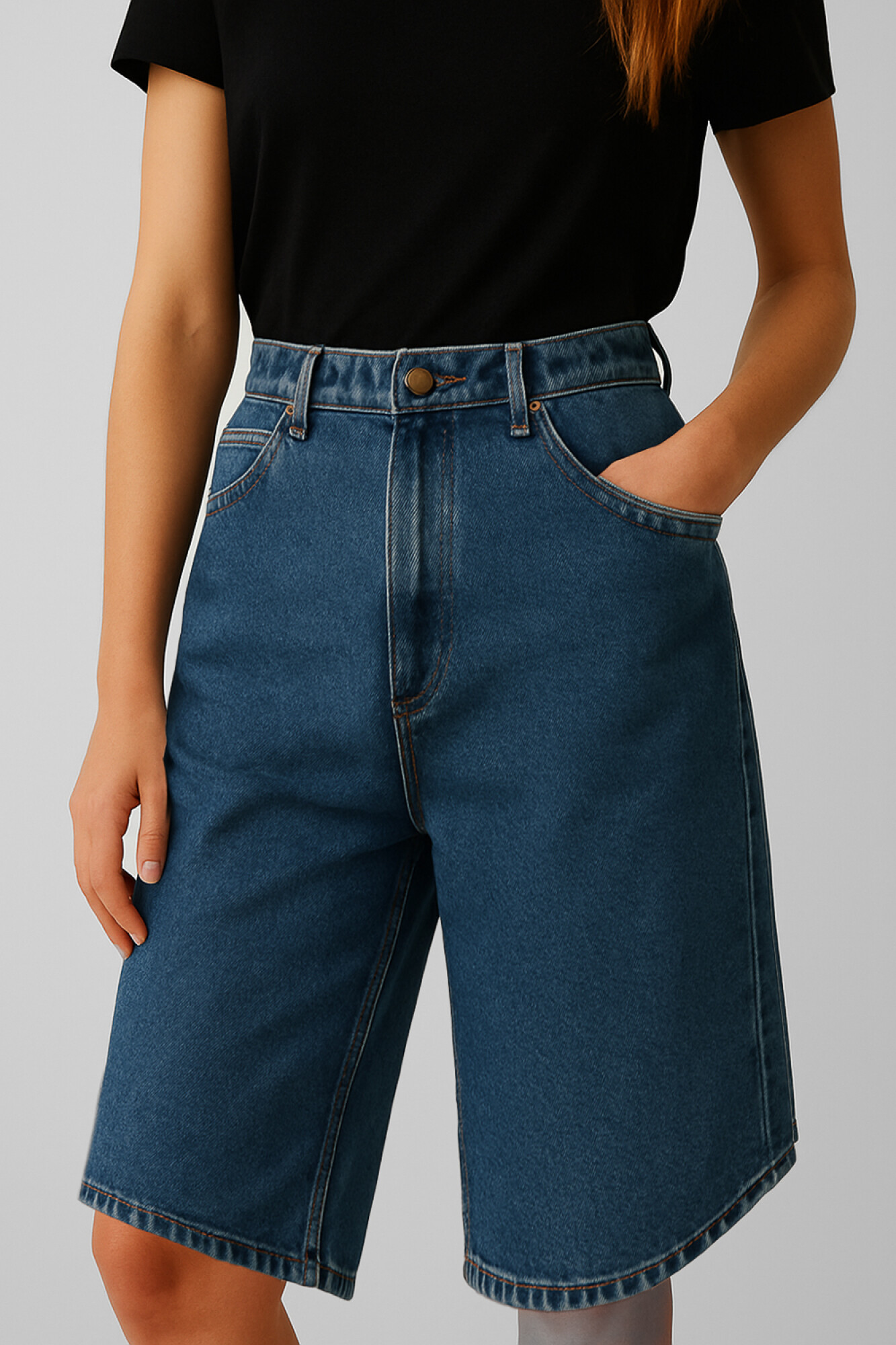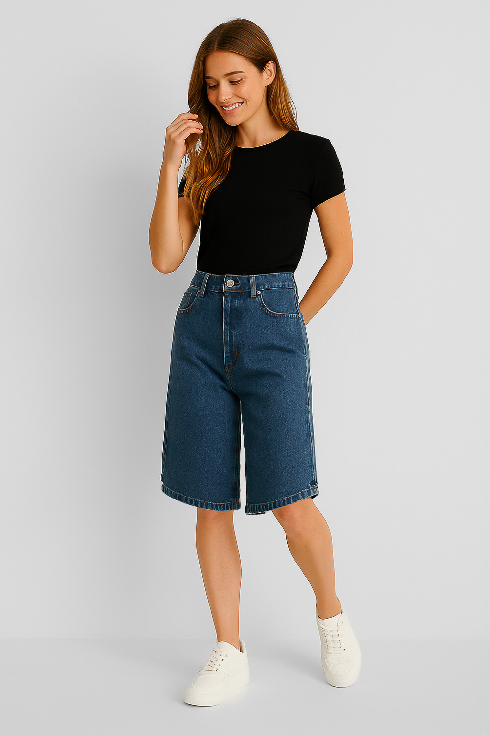 Nuevos Bermuda jean, bordado, recto y de calce alto