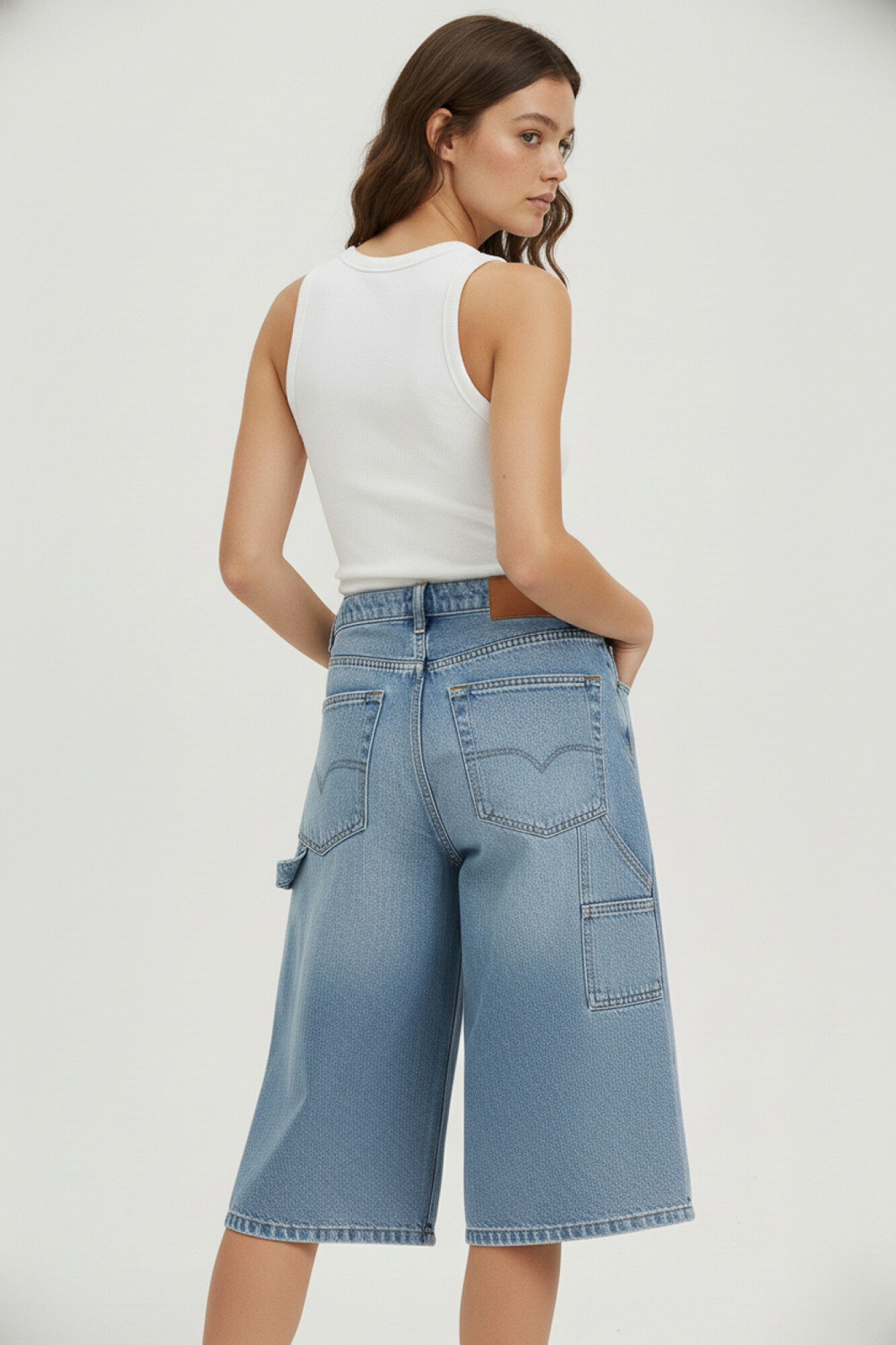 $ 951 Nuevos Bermuda jean, bolsillos, ancho y de calce medio