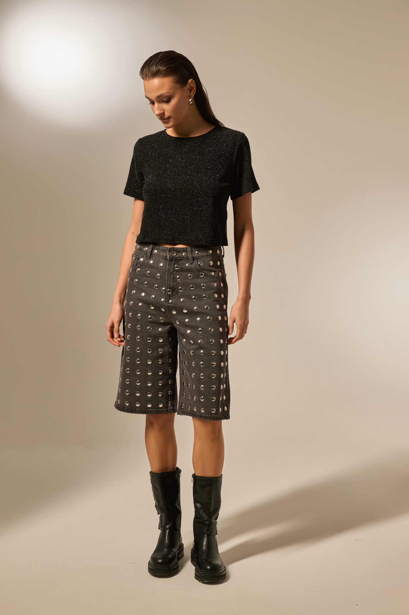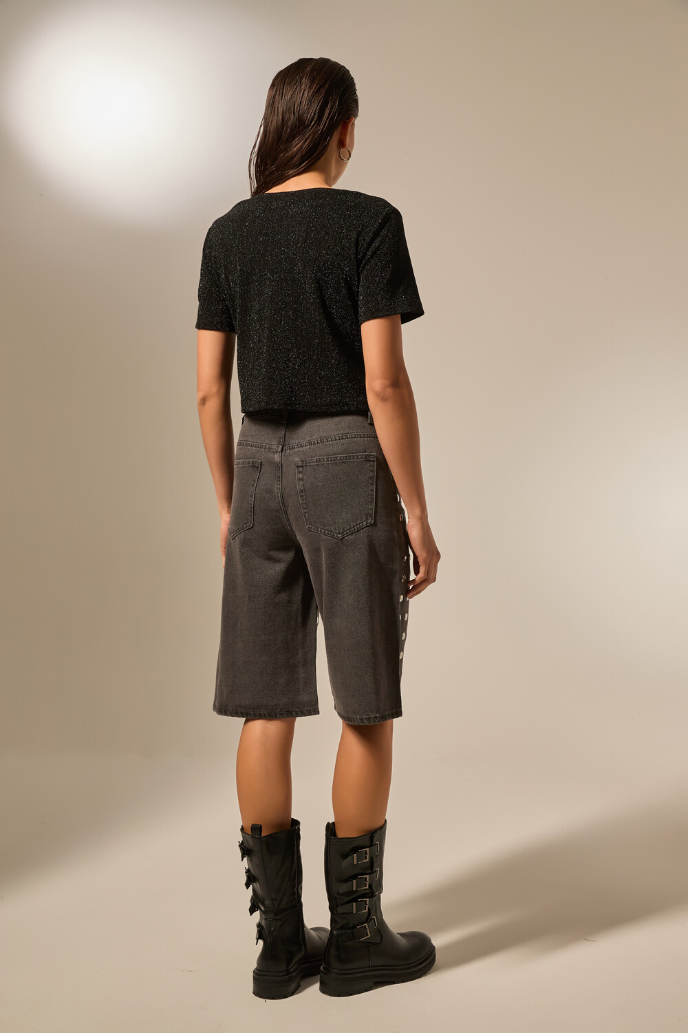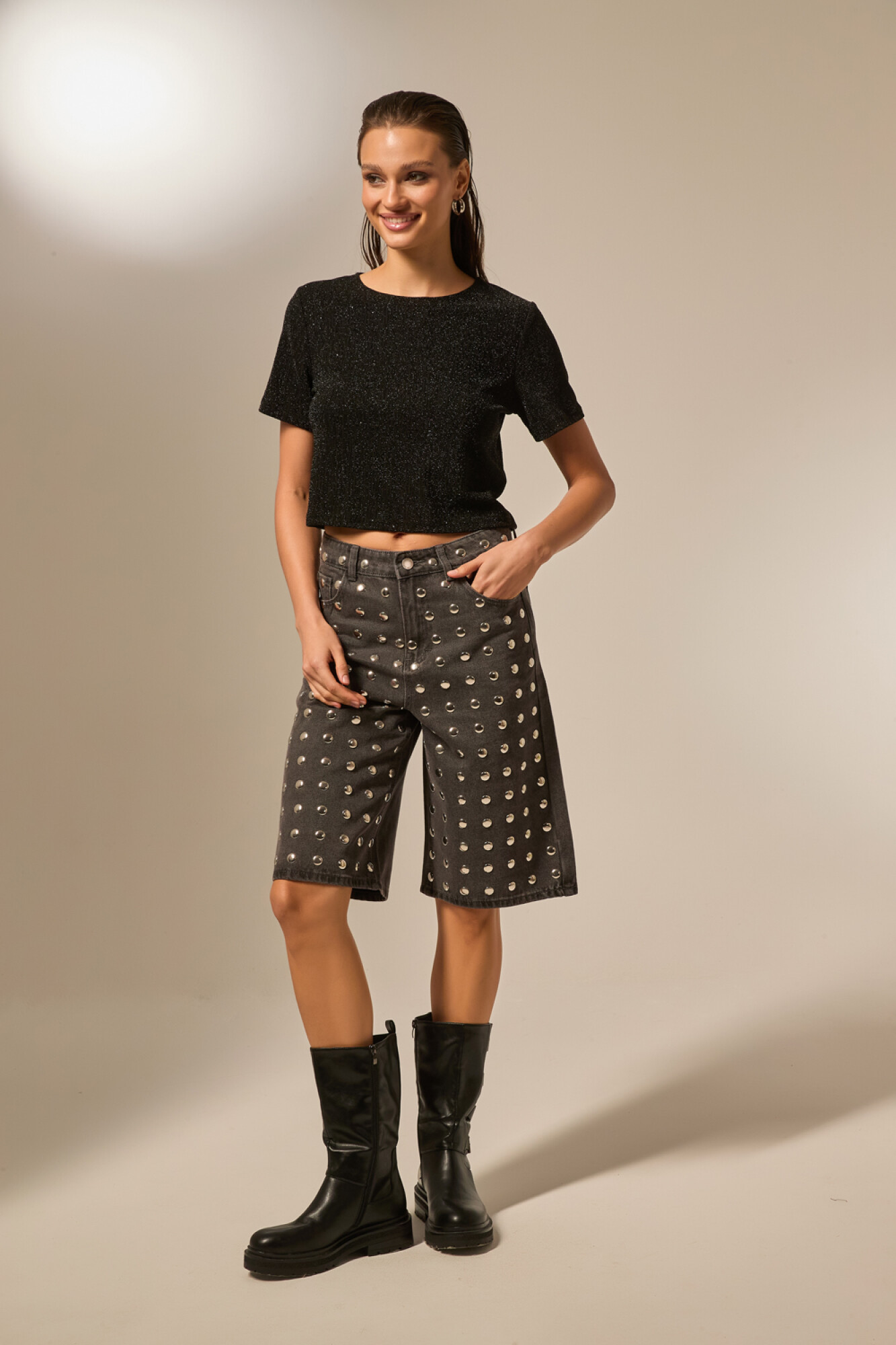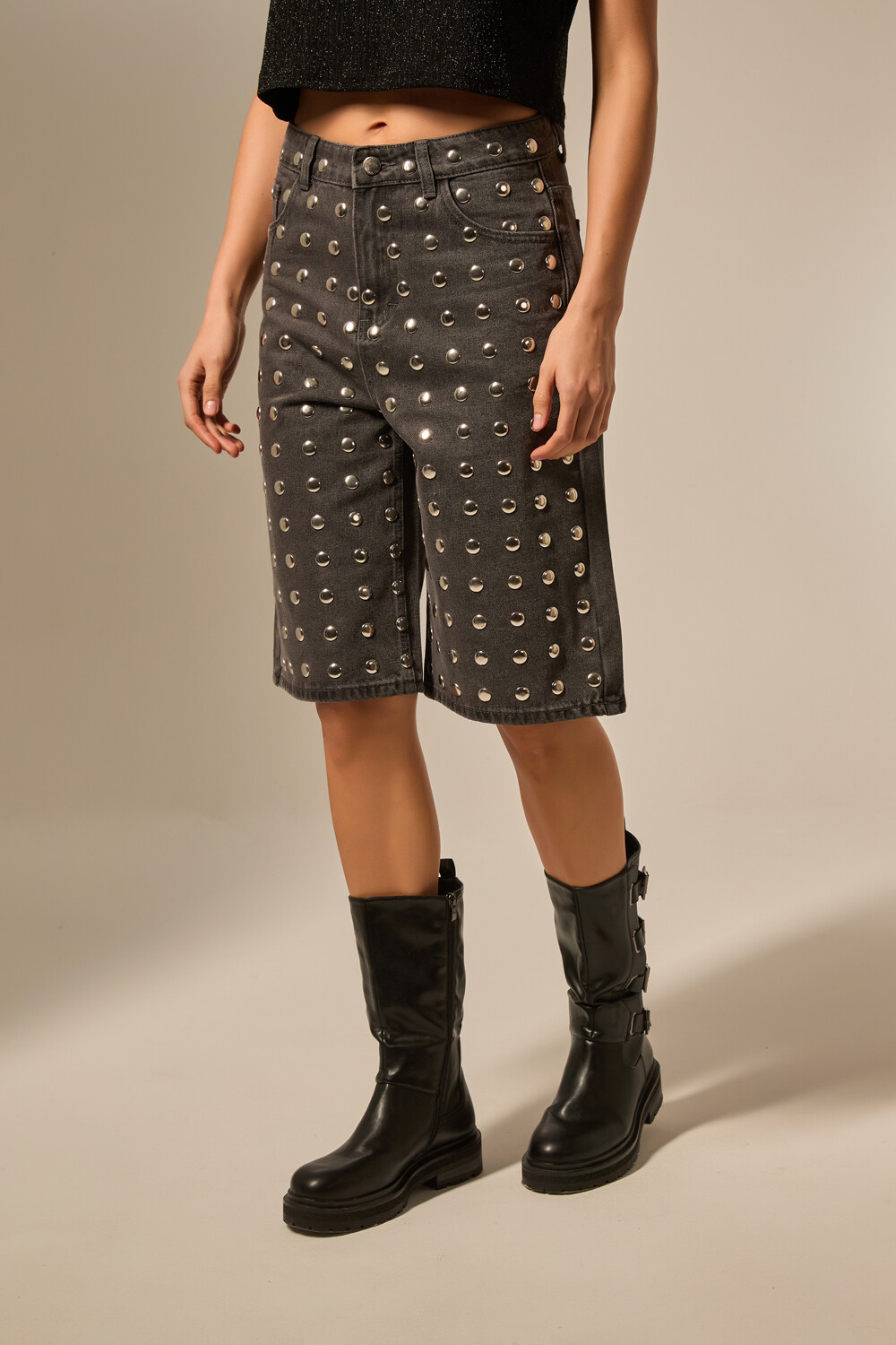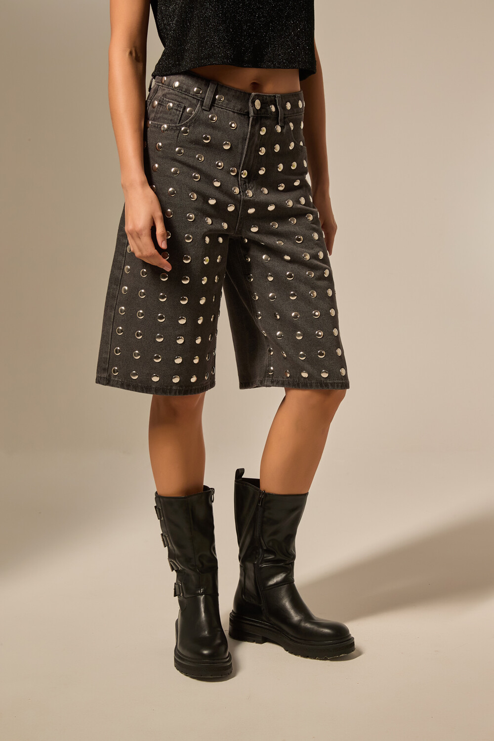 Nuevos Bermuda jean, strass, holgado y de calce alto