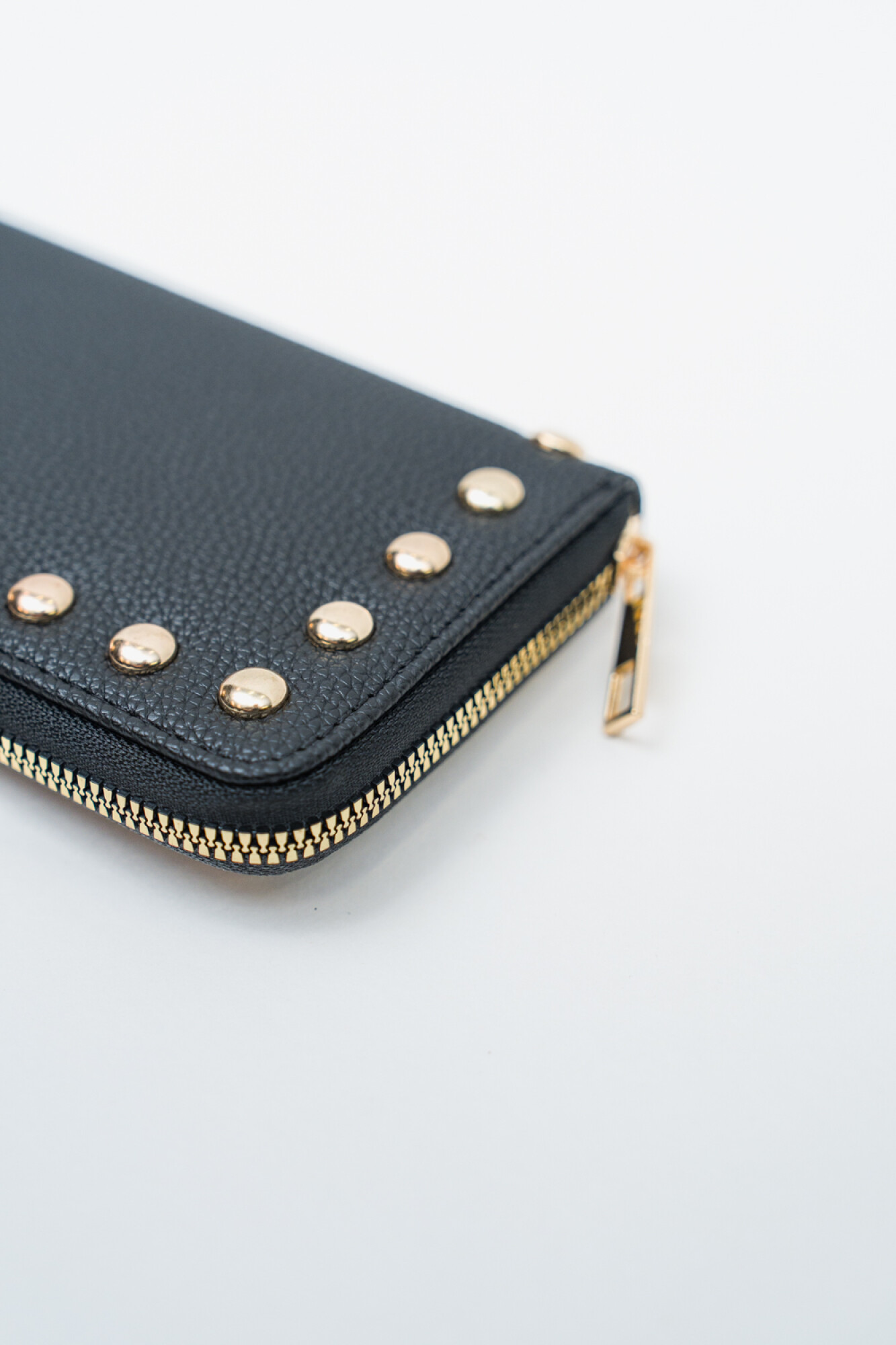 $ 339 Nuevos Recibilo en Billetera con tachas. Medidas: 19x10cm. Color Gris