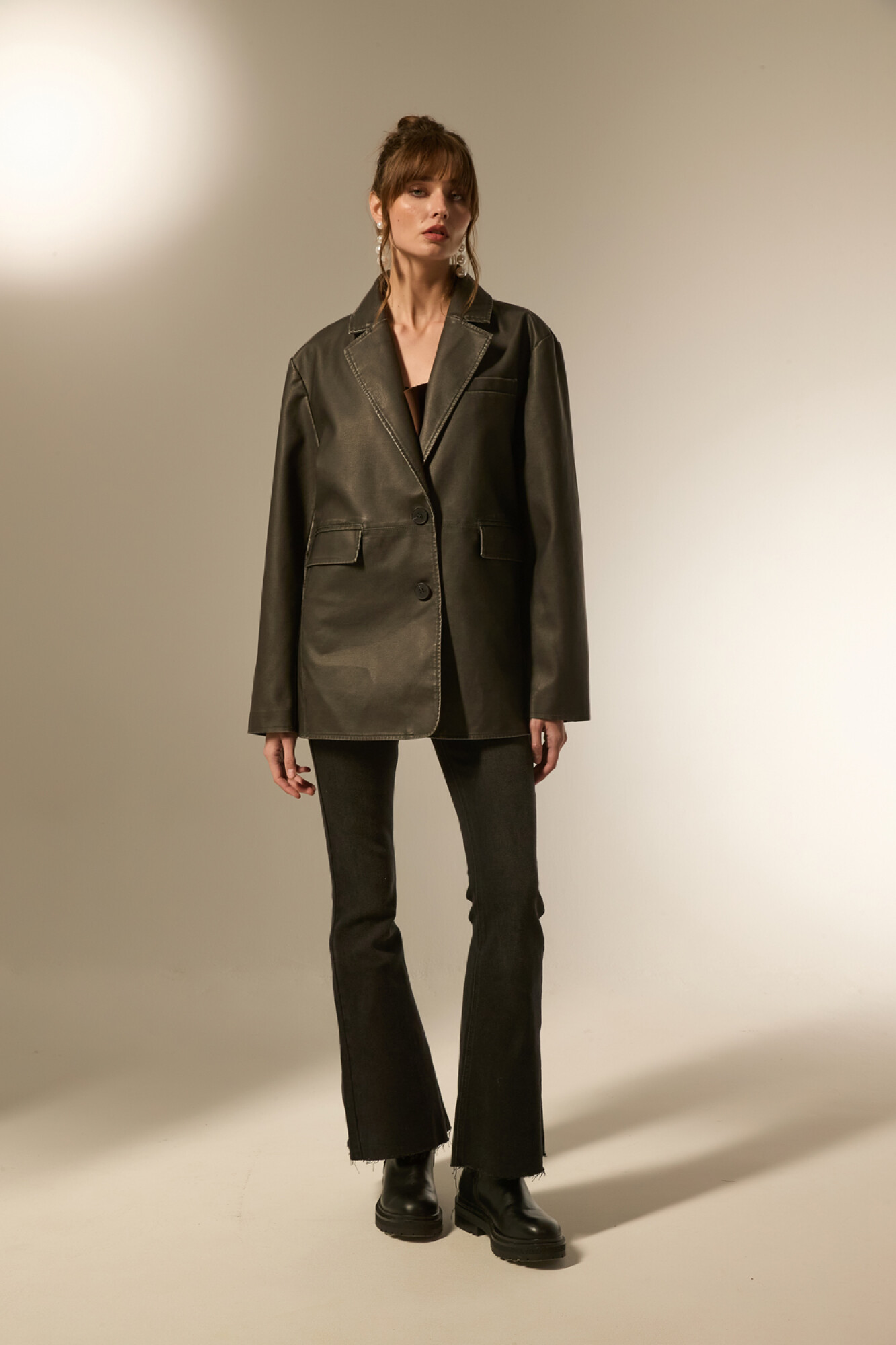 Nuevos Recibilo en Blazer eco-cuero, wash, bolsillos, holgado, con botones y cuello solapa
