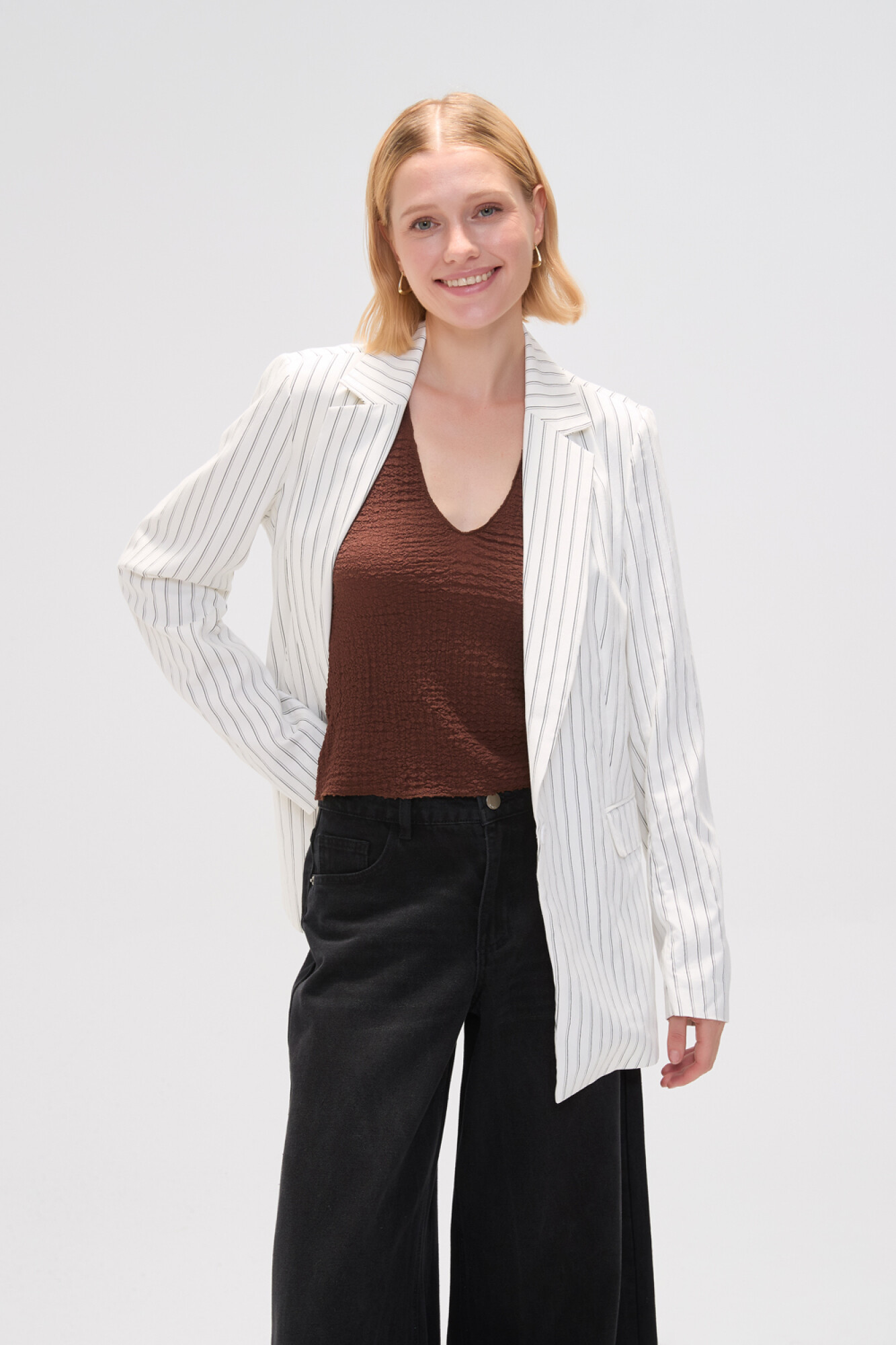 Nuevos Recibilo en Blazer viscosa, bolsillos, rayas, con boton y cuello solapa