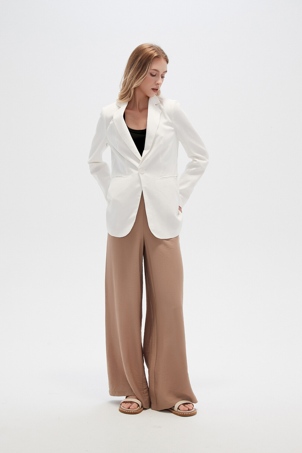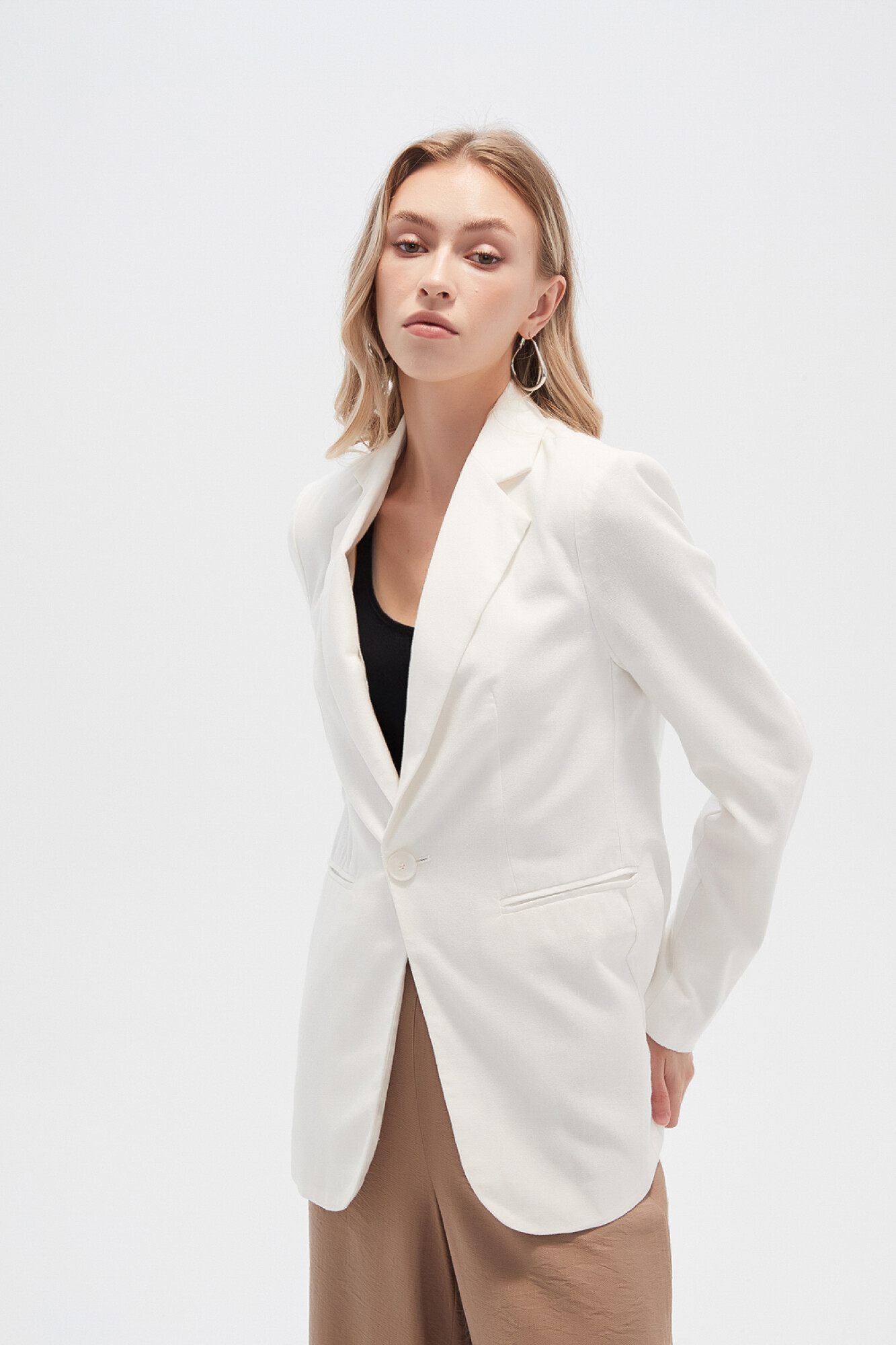 Nuevos Recibilo en Blazer lino, hombreras, entallado, con boton y cuello solapa