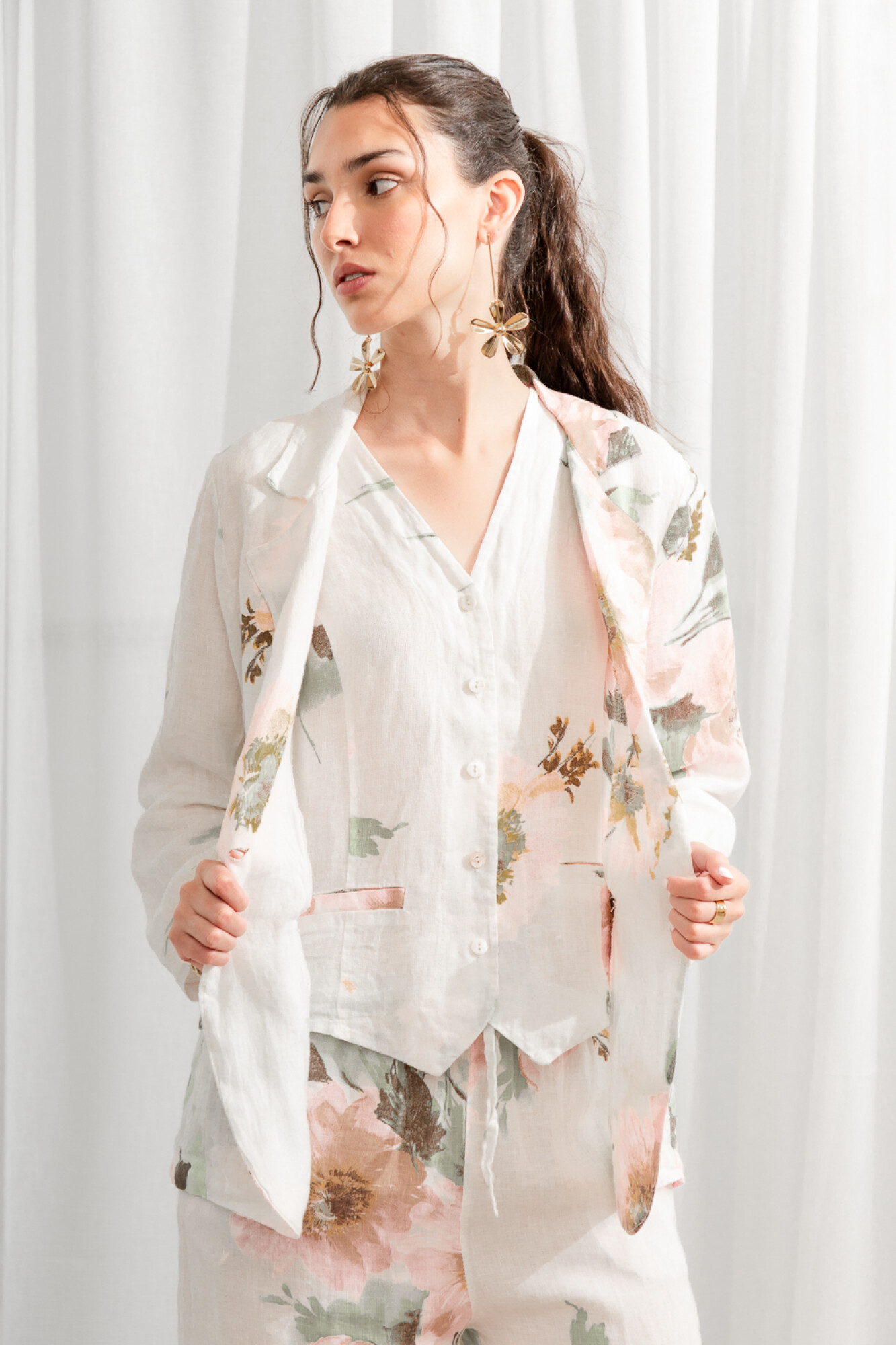 $ 2.243 Nuevos Recibilo en Blazer lino, bolsillos, estampado, holgado y cuello solapa