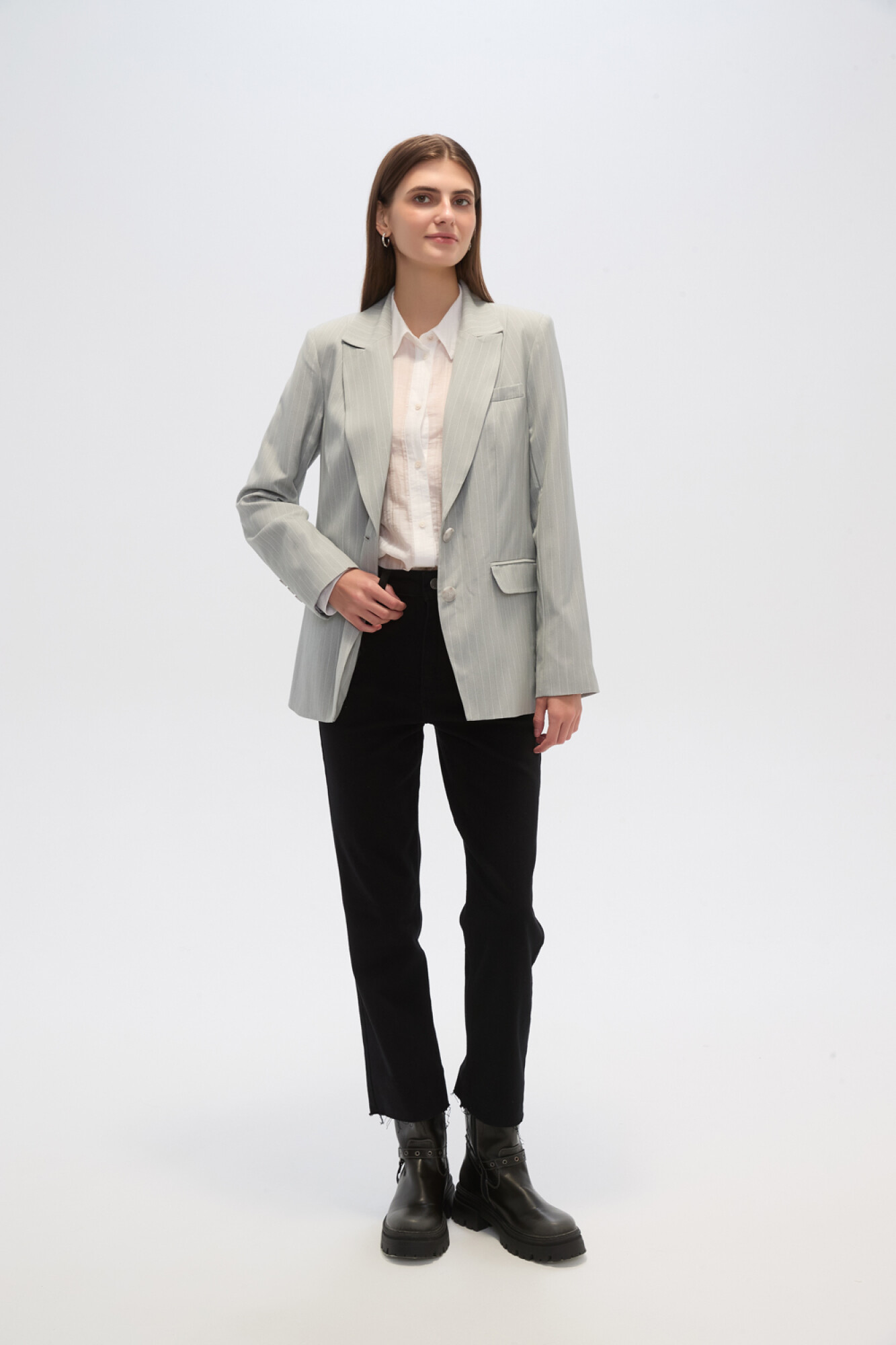 Nuevos Recibilo en Blazer, bolsillos, rayas, ancho, con botones y cuello solapa