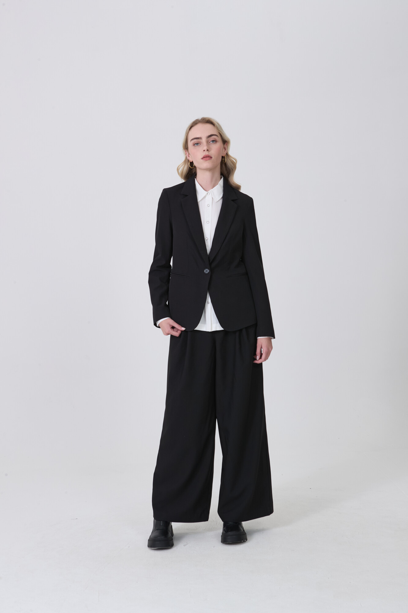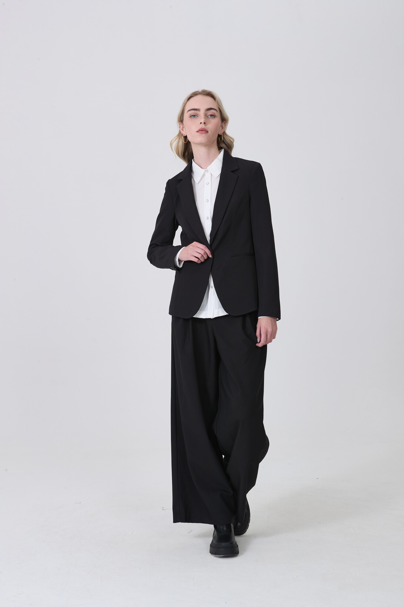 $ 1.465Blazer poliester, con bolsillo, entallado, con boton y cuello solapa