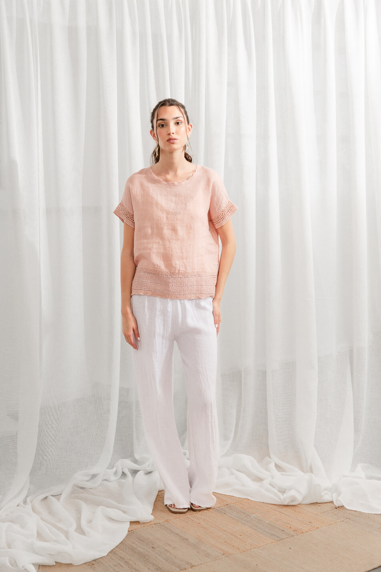 $ 1.359 Nuevos Recibilo en Blusa lino, holgado, con tape y cuello redondo