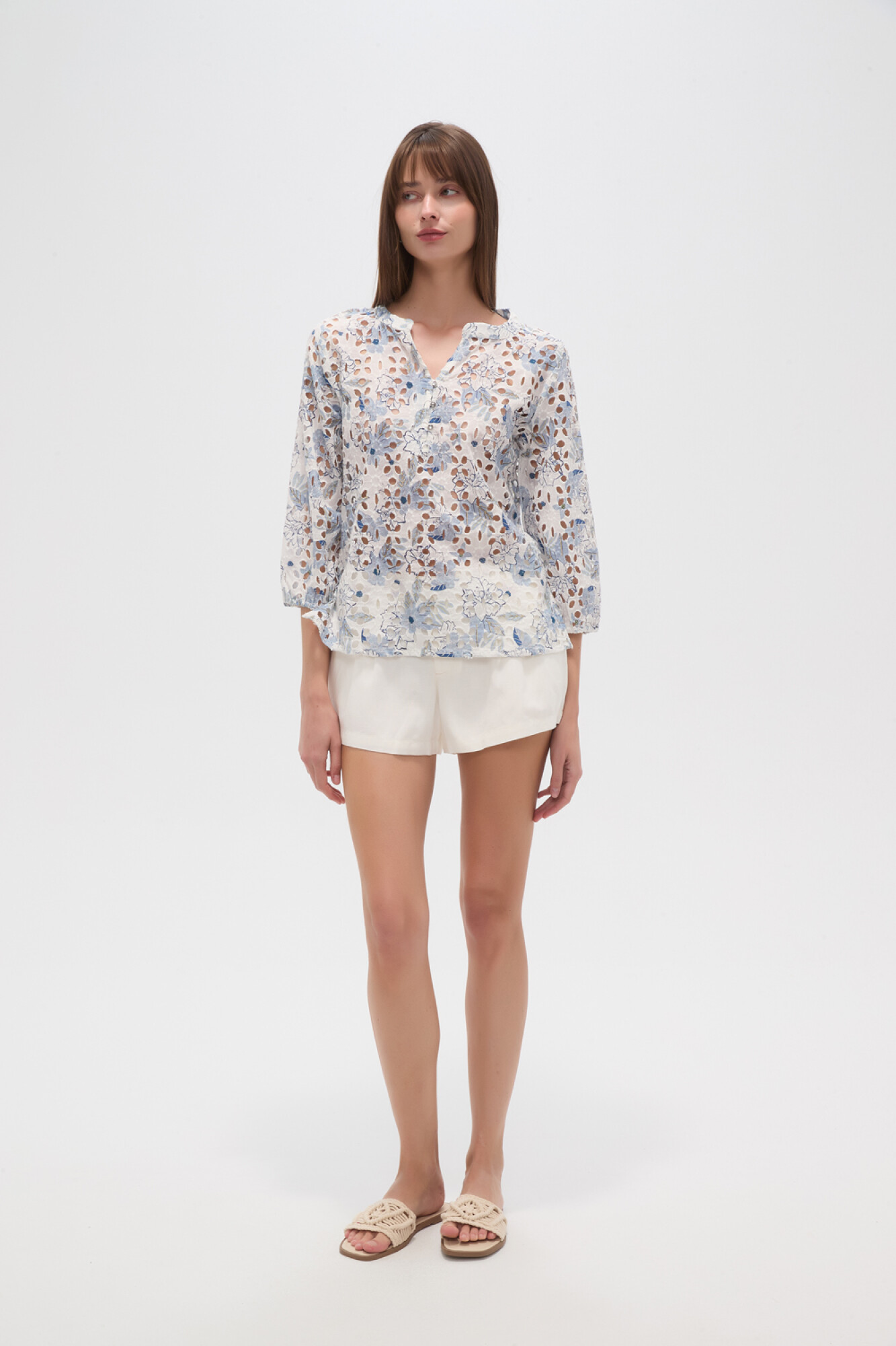 Nuevos Recibilo en Blusa algodon, aop, broderie, estampado, con botones y cuello en v