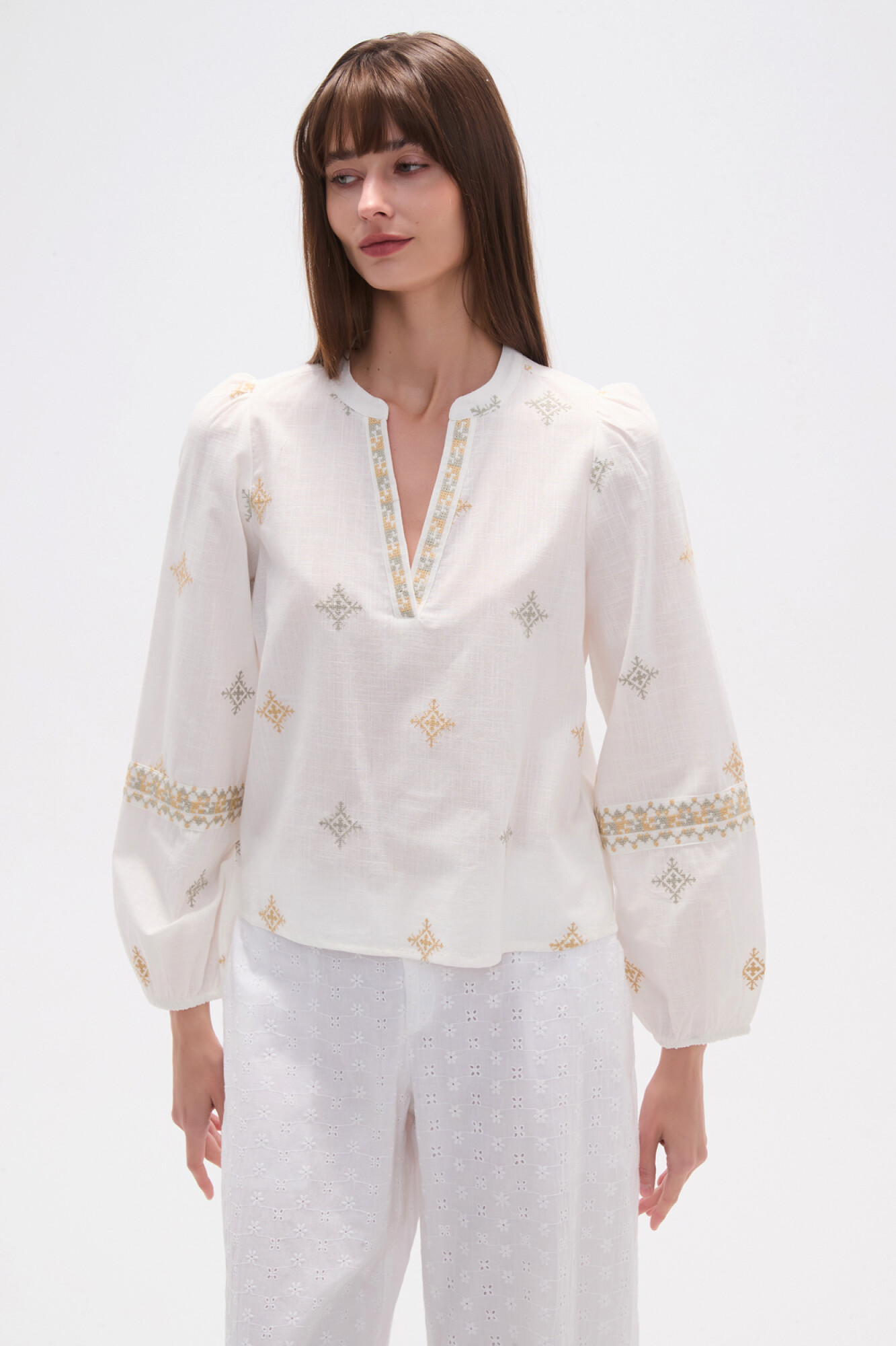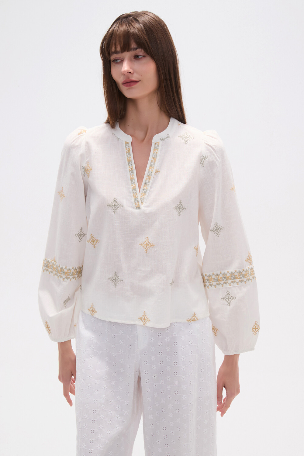 $ 883 Nuevos Recibilo en Blusa algodon, recurso bordado, bordado, relaxed y cuello mao