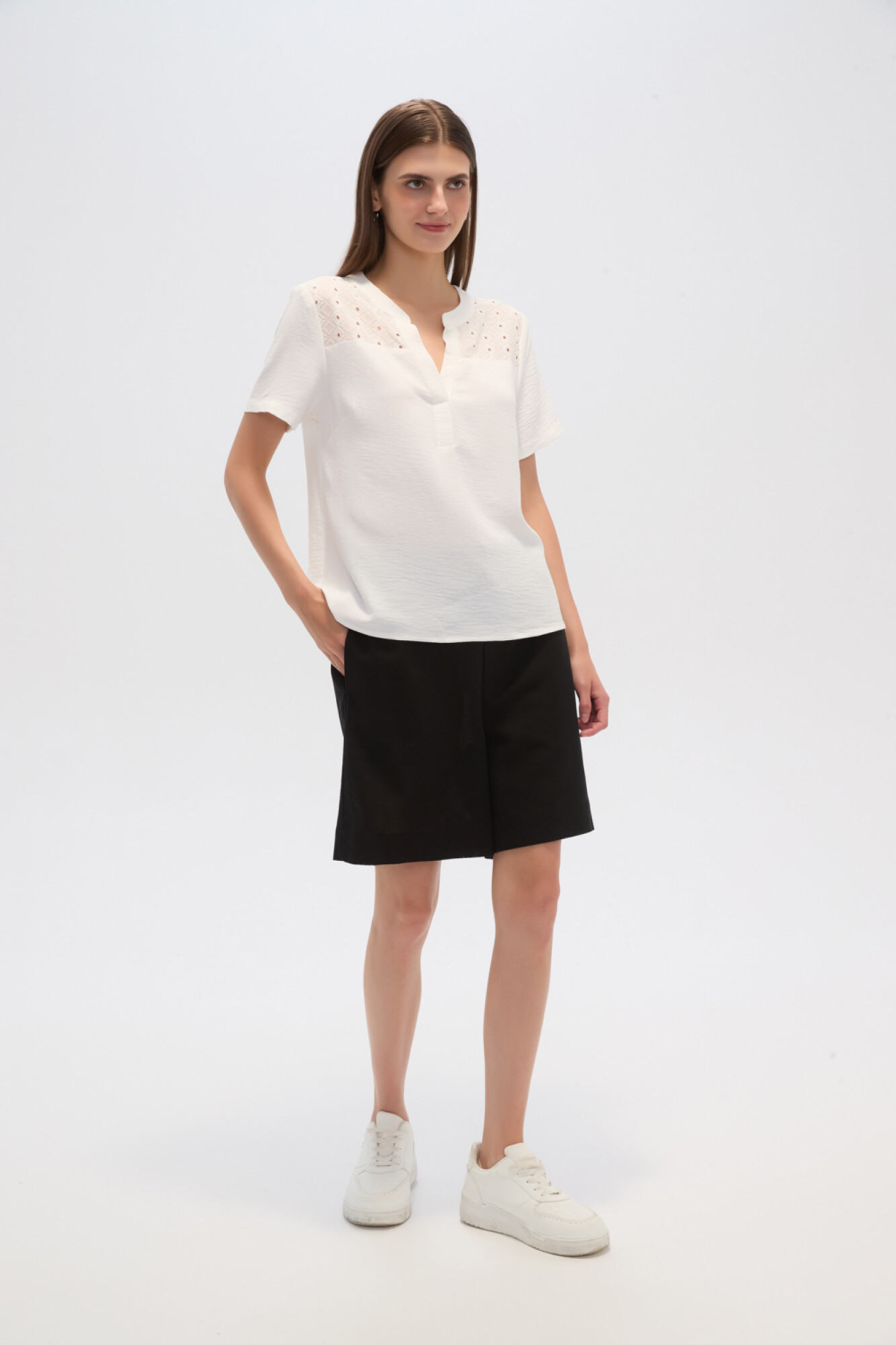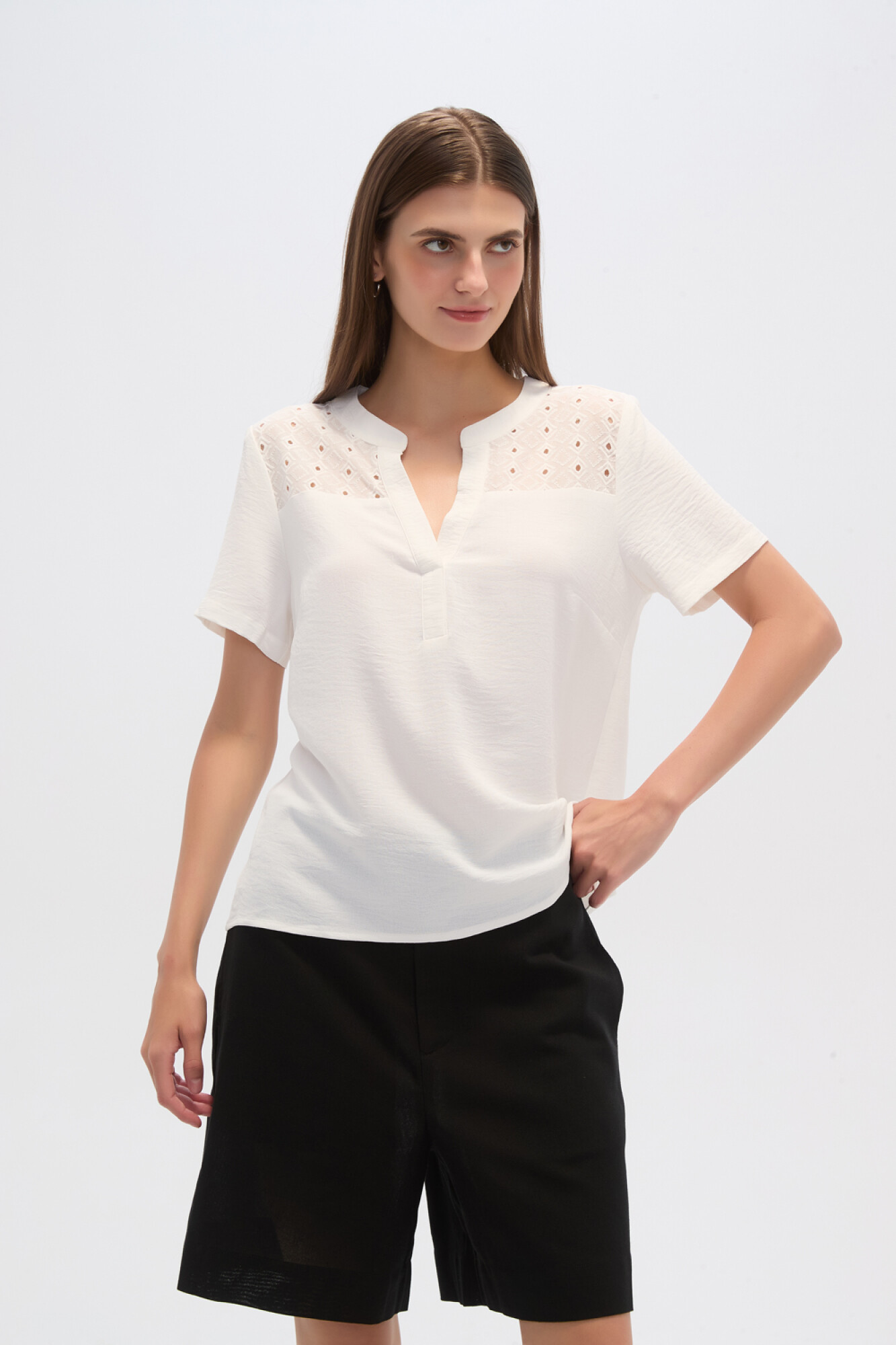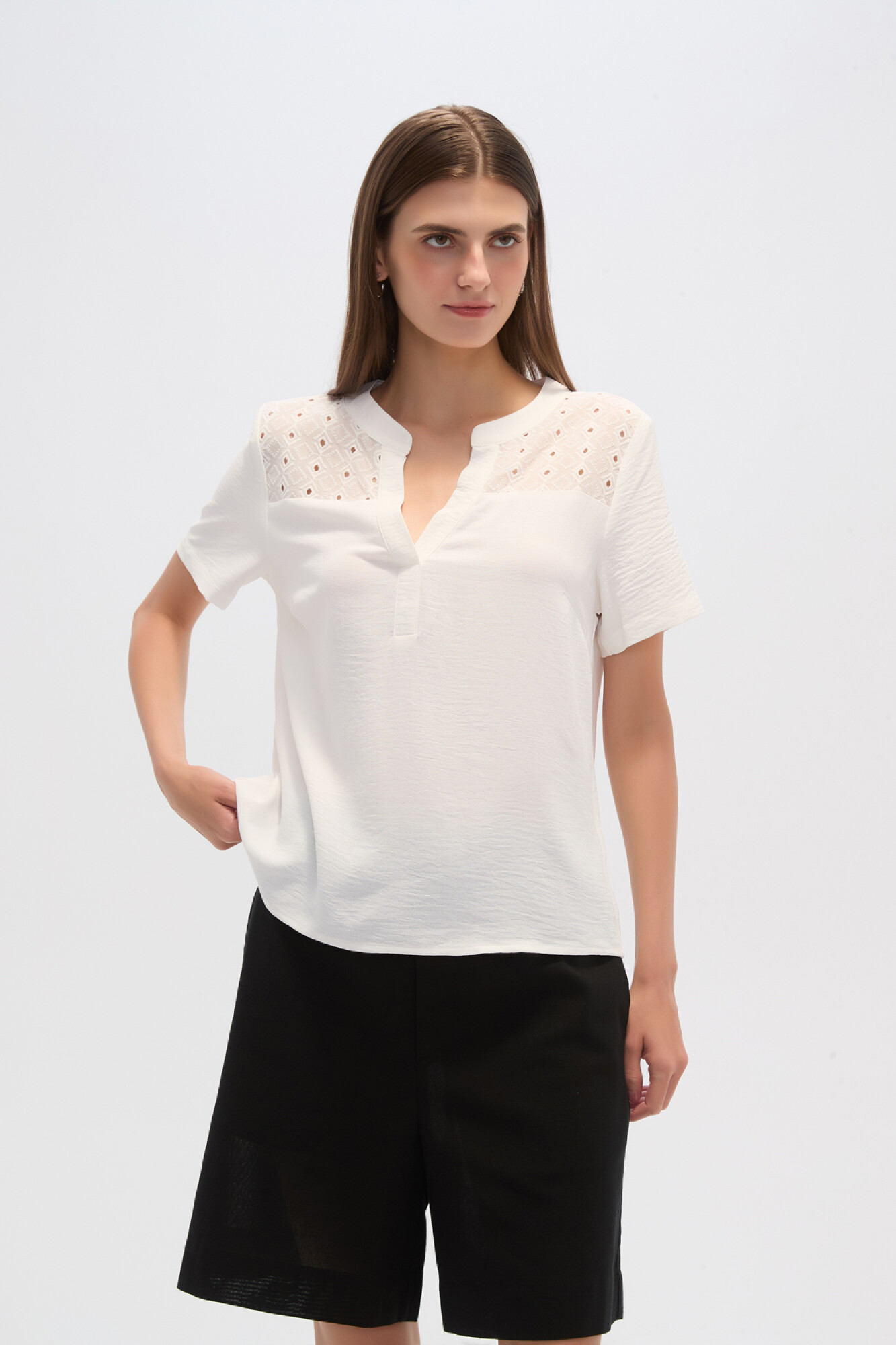 Nuevos Recibilo en Blusa poliester, broderie, holgado y cuello mao