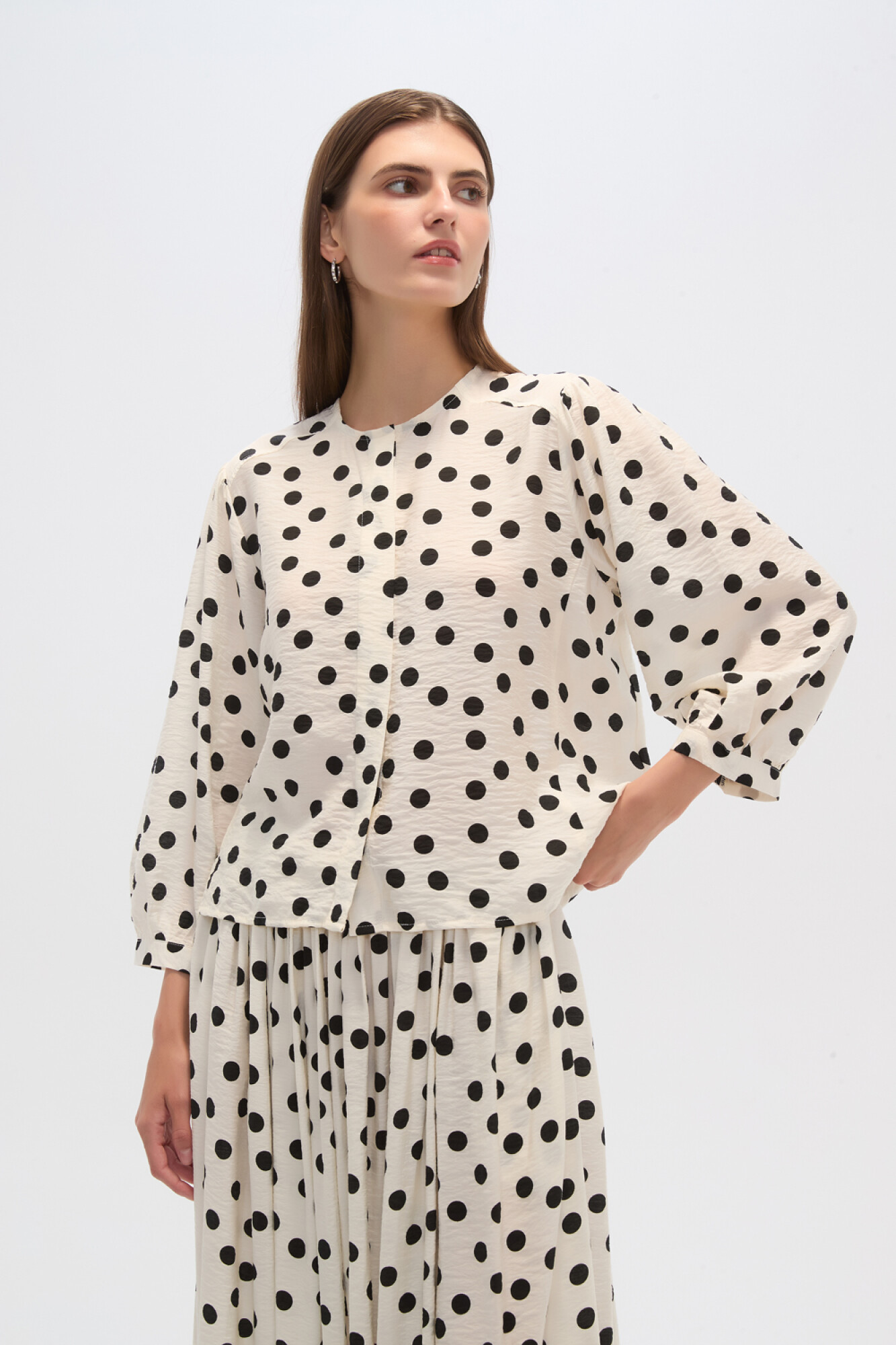 $ 815 Nuevos Recibilo en Blusa viscosa, aop, con botones y cuello a la base
