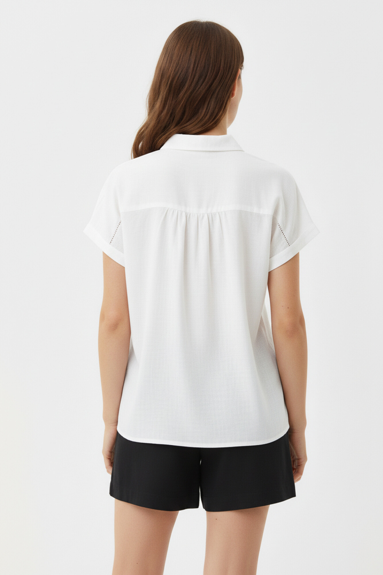 $ 509 Sale Blusa lino, con botones y cuello camisa