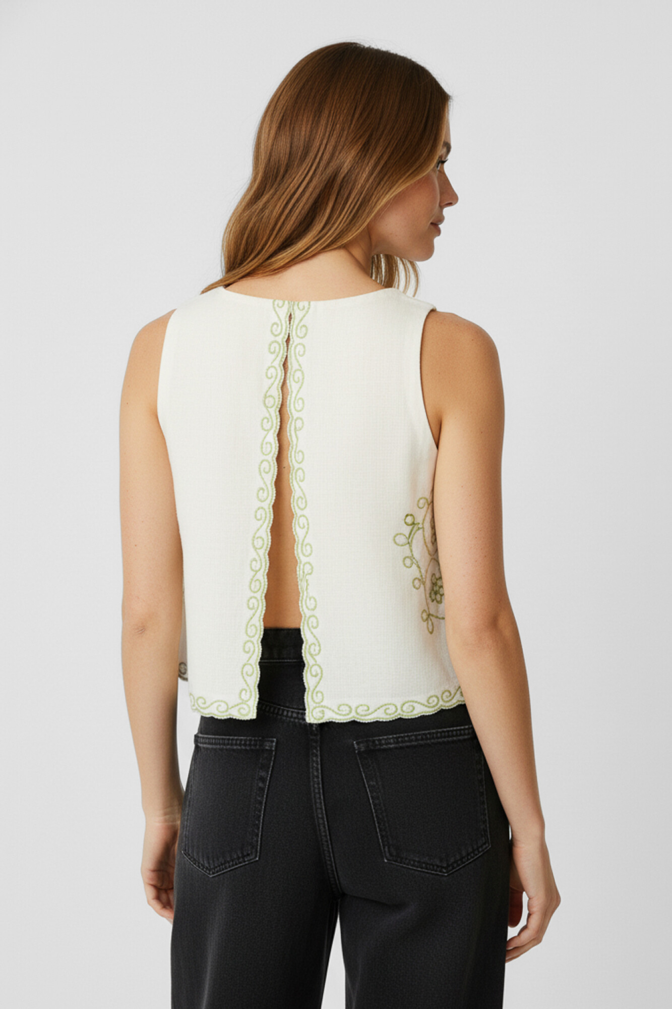 $ 815 Nuevos Recibilo en Blusa lino, recurso bordado, abertura, ancho, con botones y cuello a la base