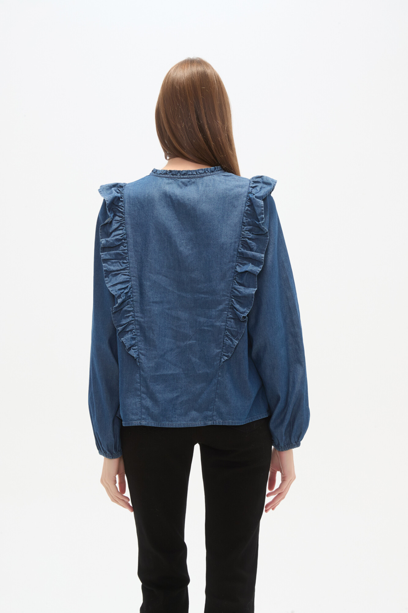 $ 1.019 Nuevos Blusa jean, volados, holgado, con lazo y cuello en v