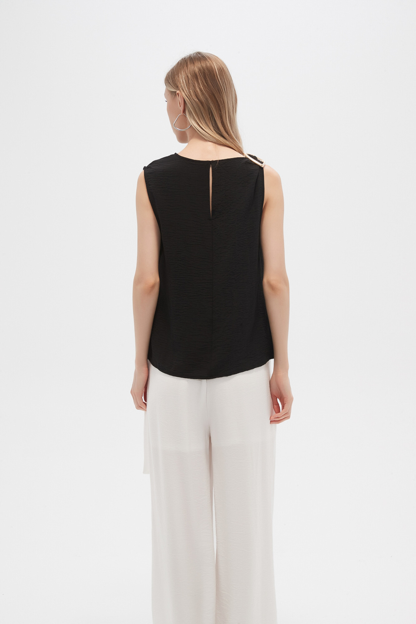 Sale Blusa poliester, con boton, con hebillas y cuello asimetrico