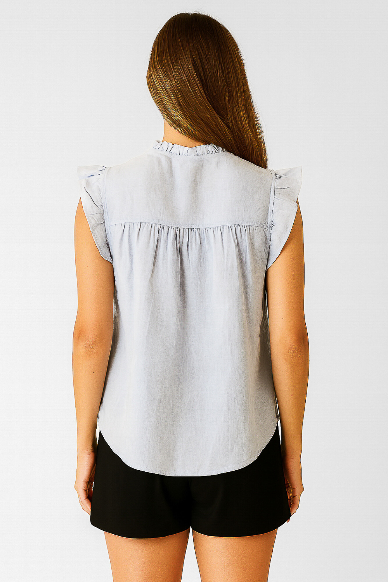 $ 764 Nuevos Recibilo en Blusa viscosa, volados, holgado, con botones y cuello alto