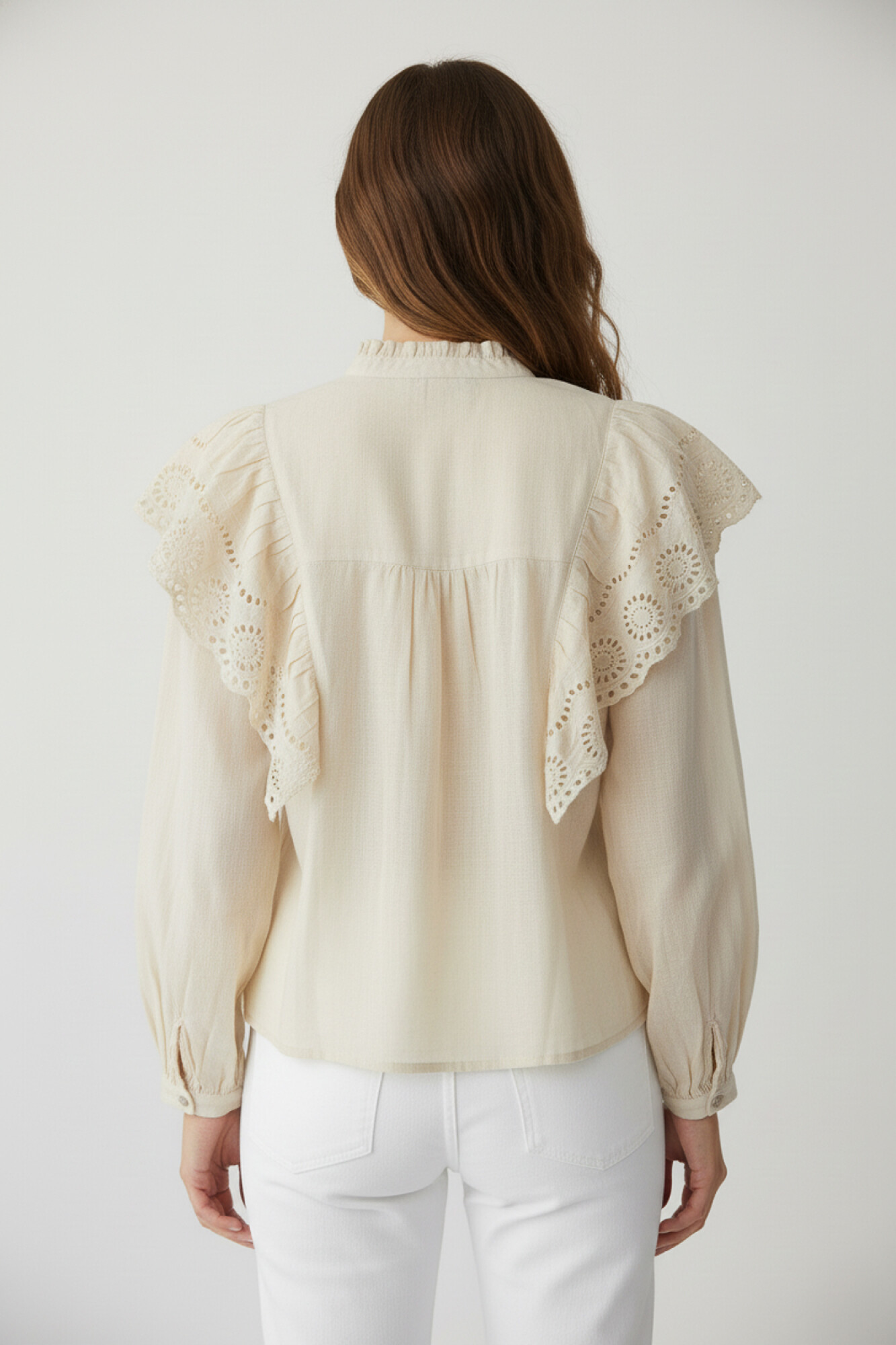 $ 849 Sale Blusa algodon, recurso bordado y cuello a la base