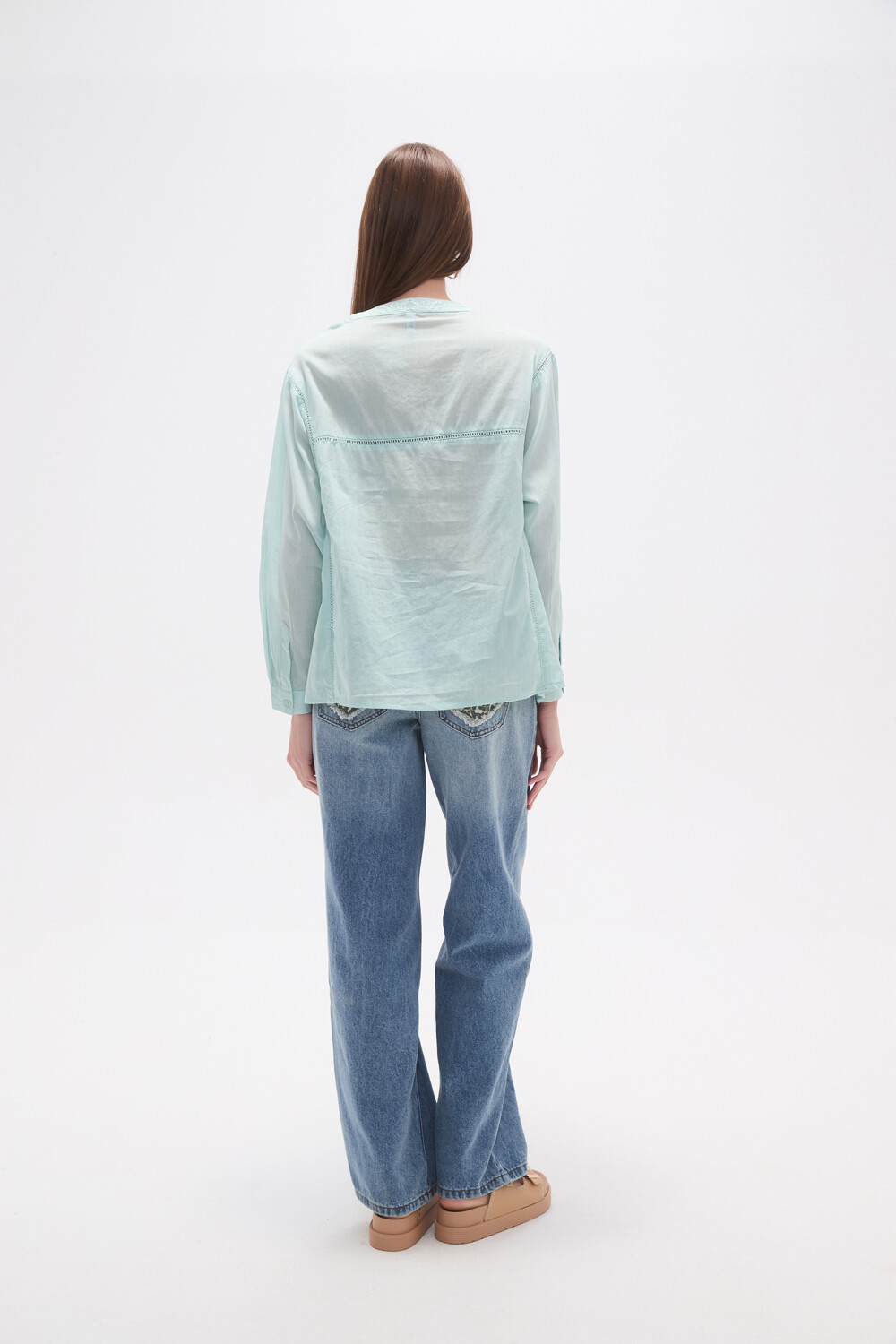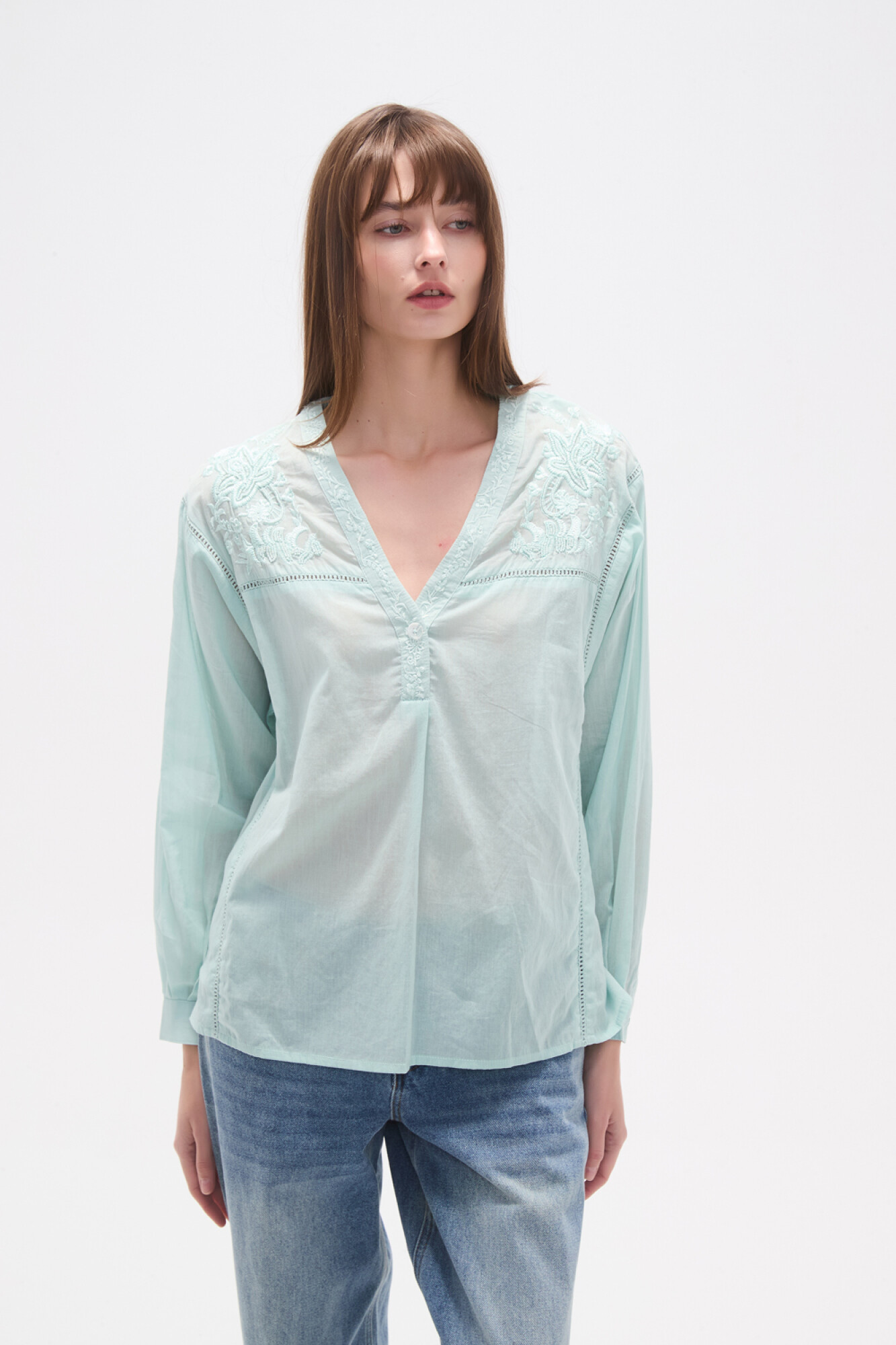 $ 779 Nuevos Blusa algodon, recurso bordado, bordado, holgado, con mostacillas y cuello en v