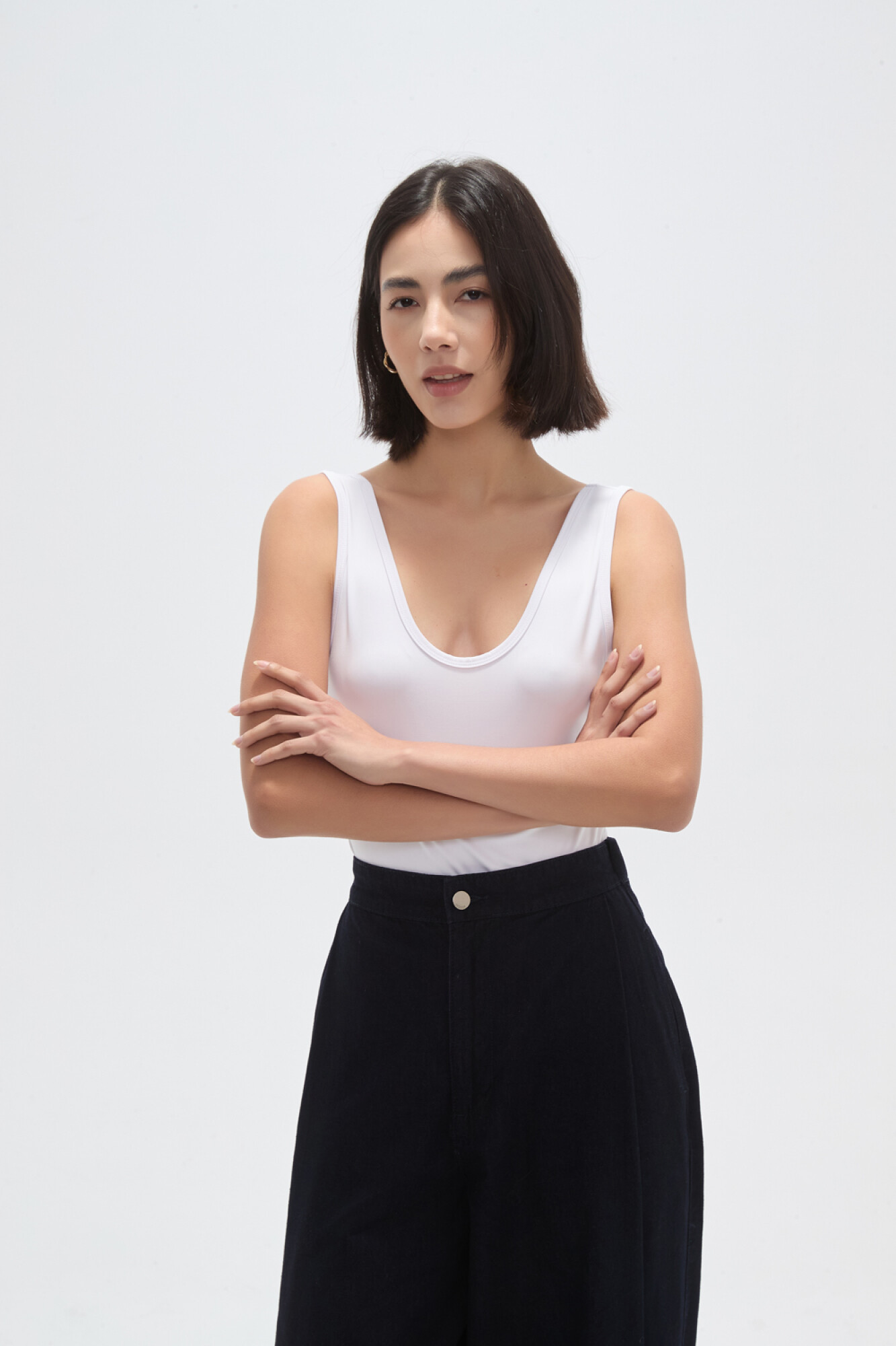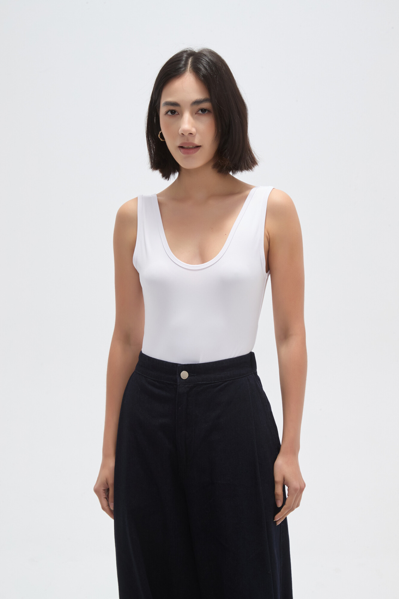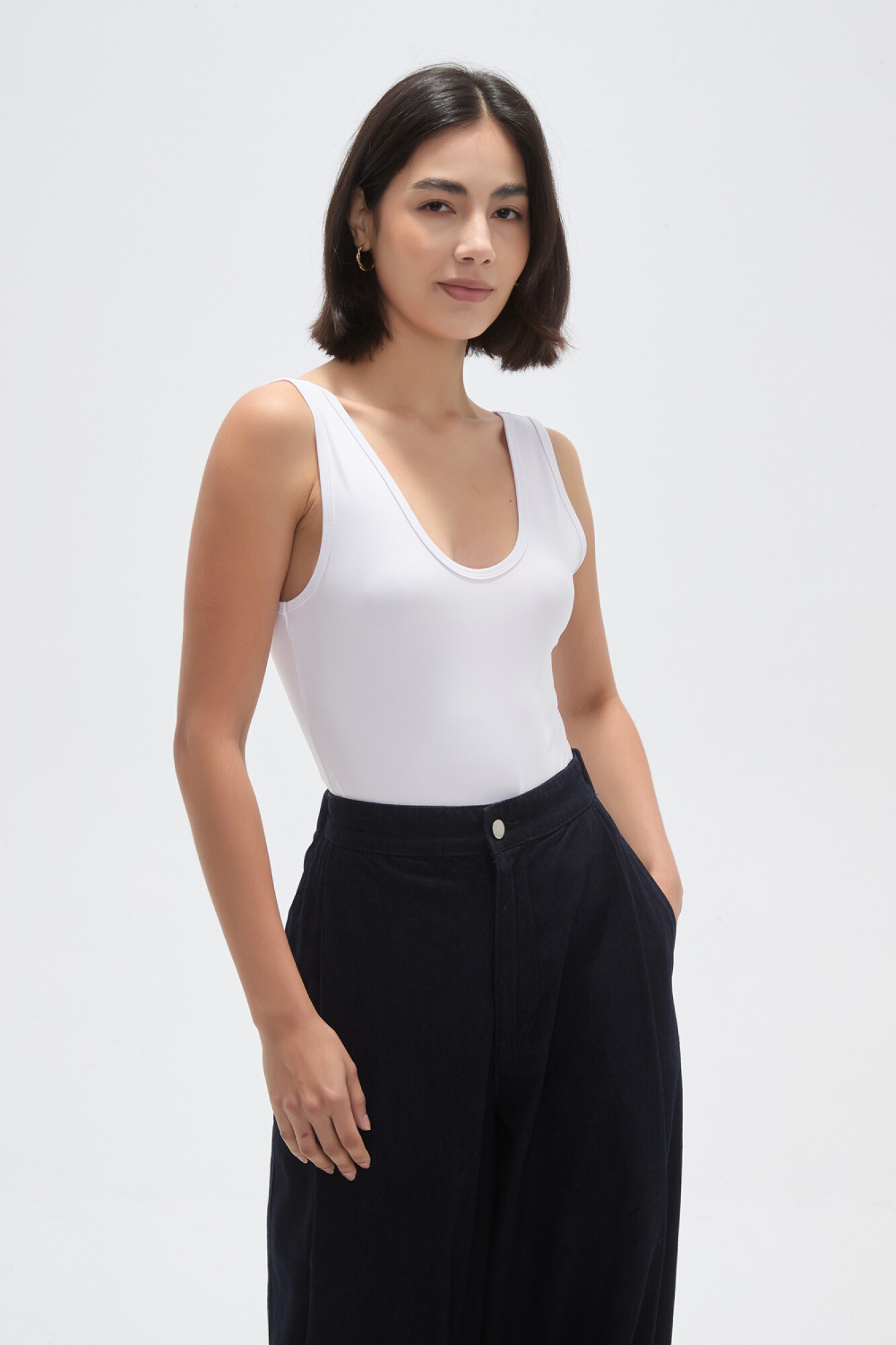 Nuevos Body bretel ancho de poliamida, al cuerpo, con broches y cuello profundo
