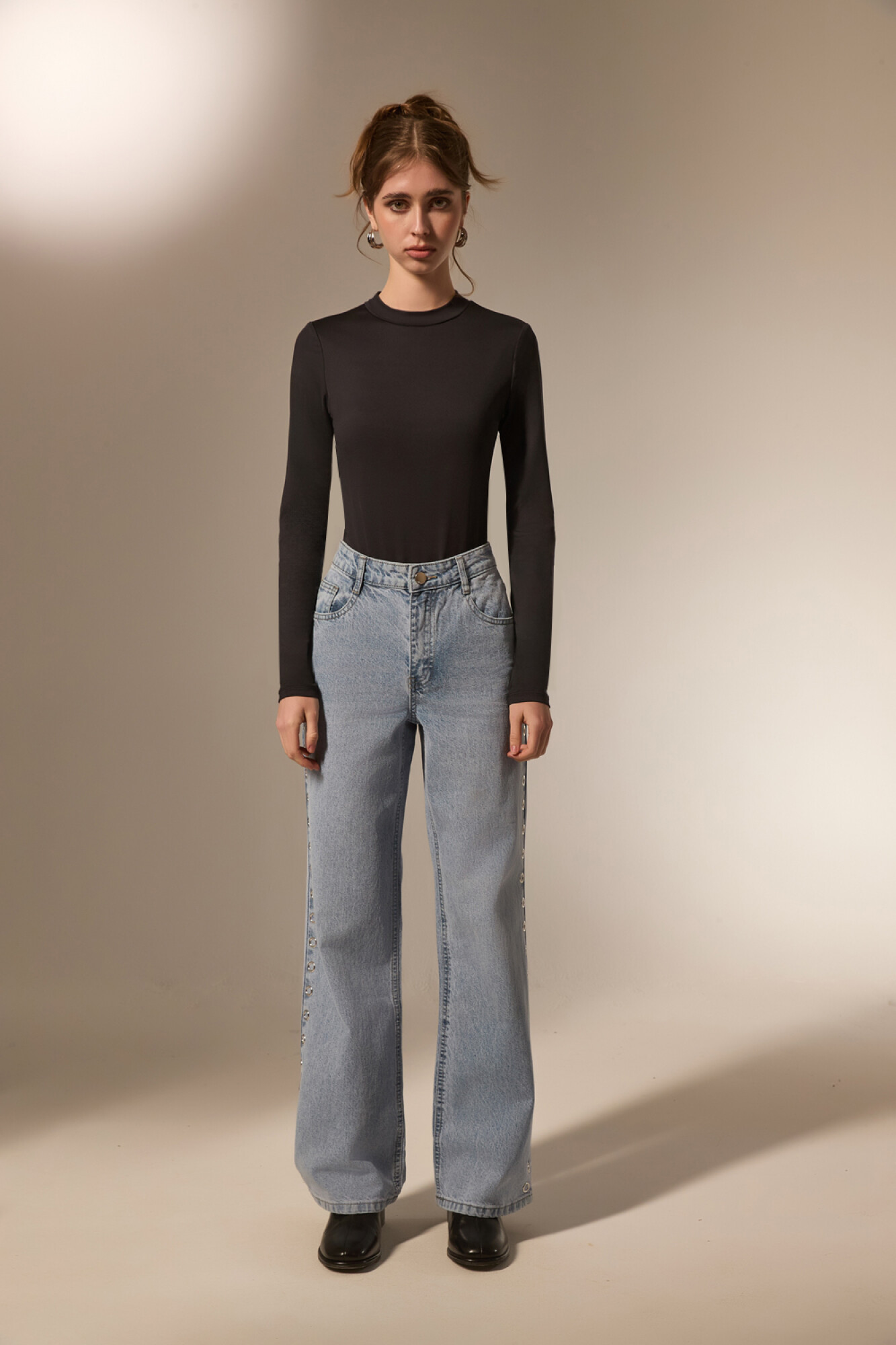 $ 679 Nuevos Recibilo en Body manga larga de poliamida, al cuerpo, con broches y cuello a la base