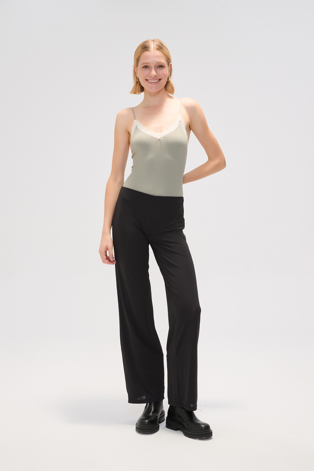 $ 506 Nuevos Recibilo en Body sin mangas de poliamida, al cuerpo, con lace, con reguladores y cuello profundo