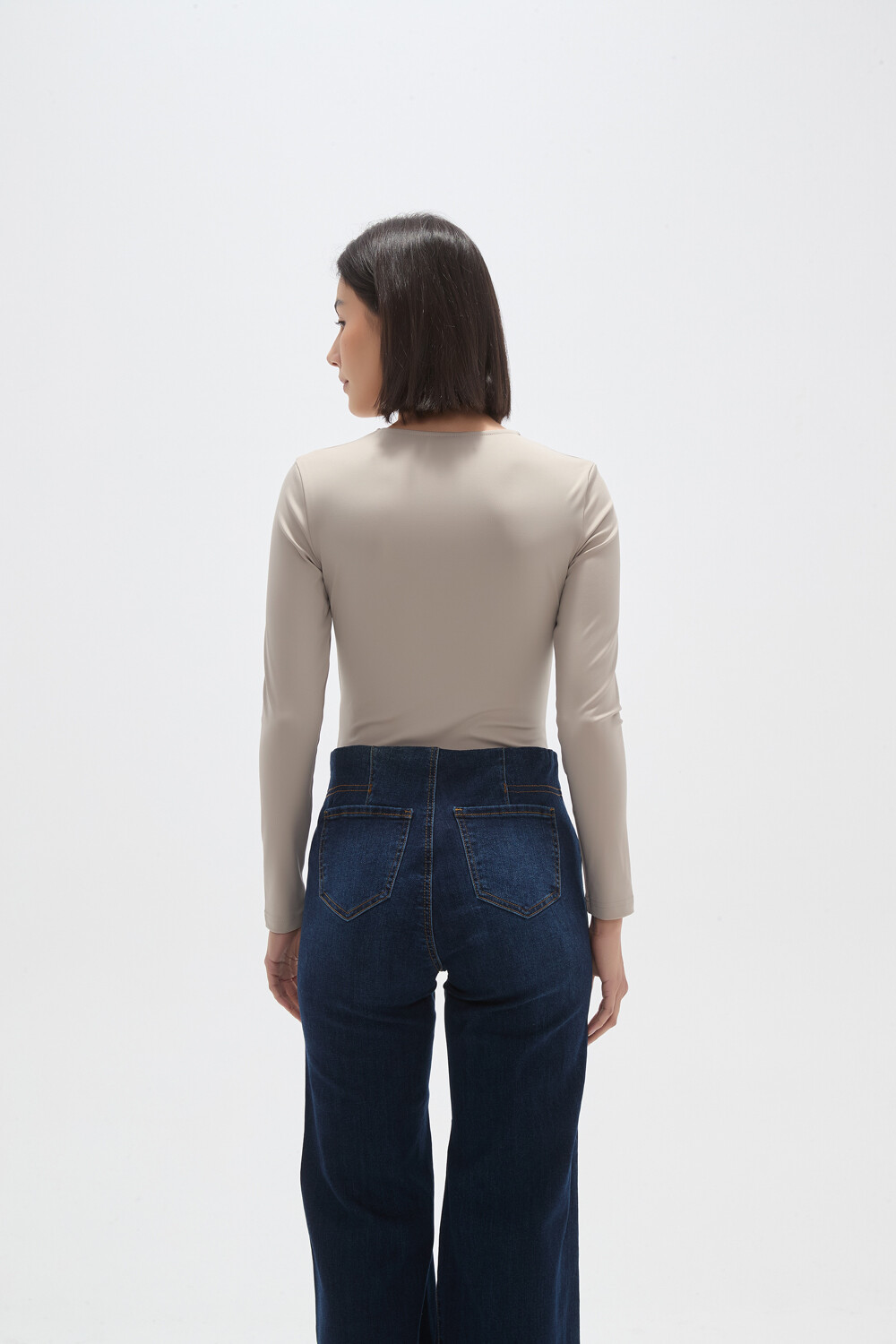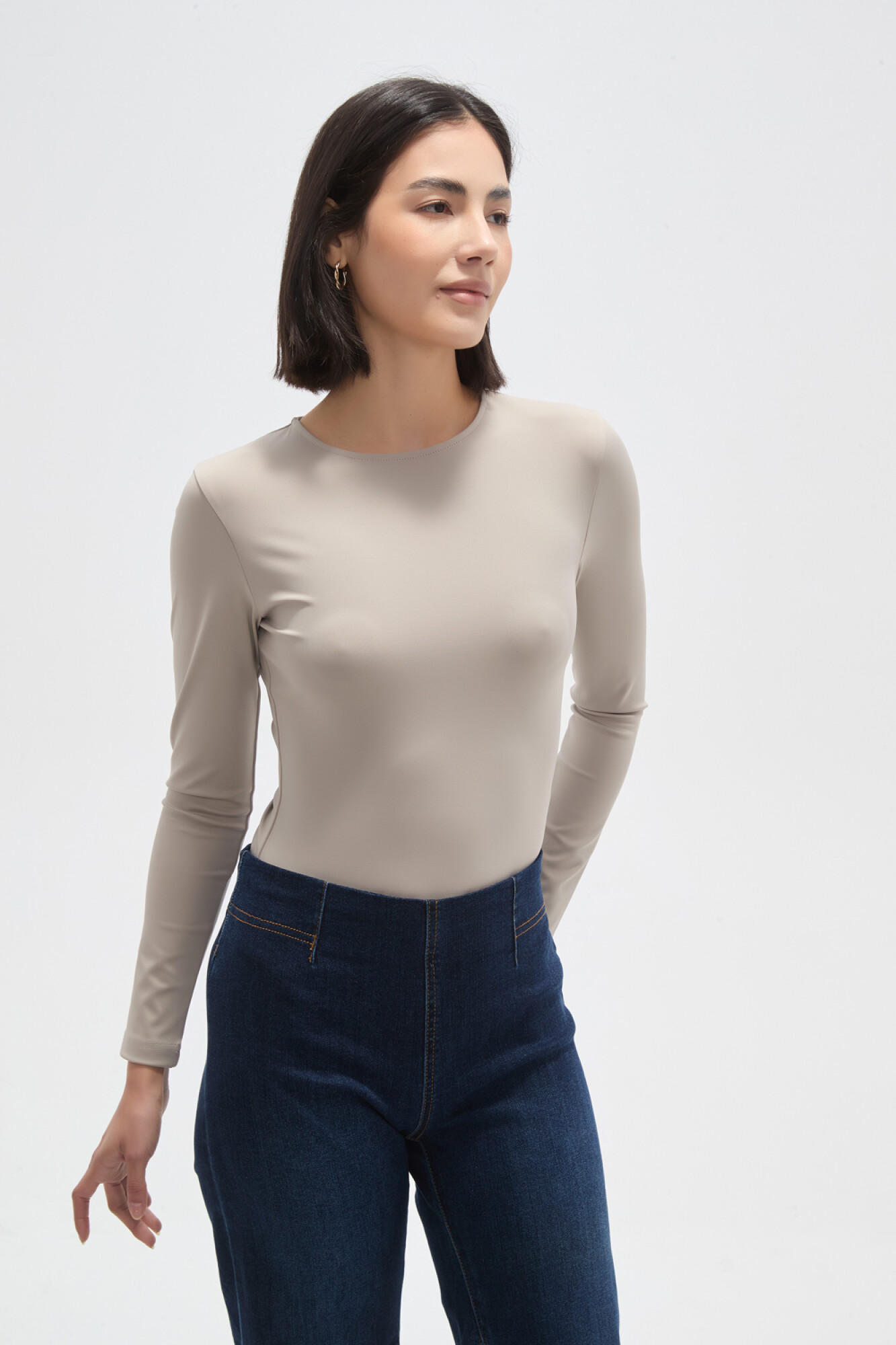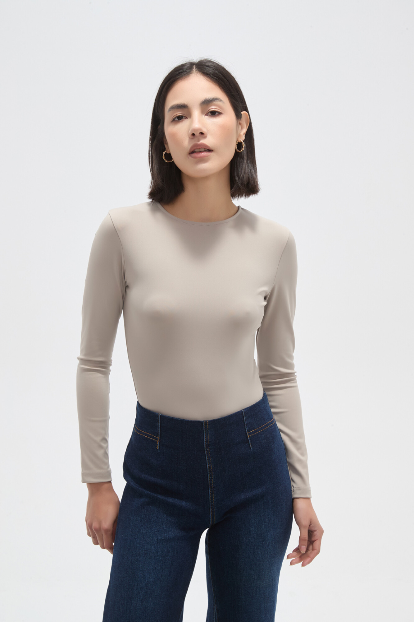 $ 679 Nuevos Body manga larga de poliamida, liso, al cuerpo y cuello a la base