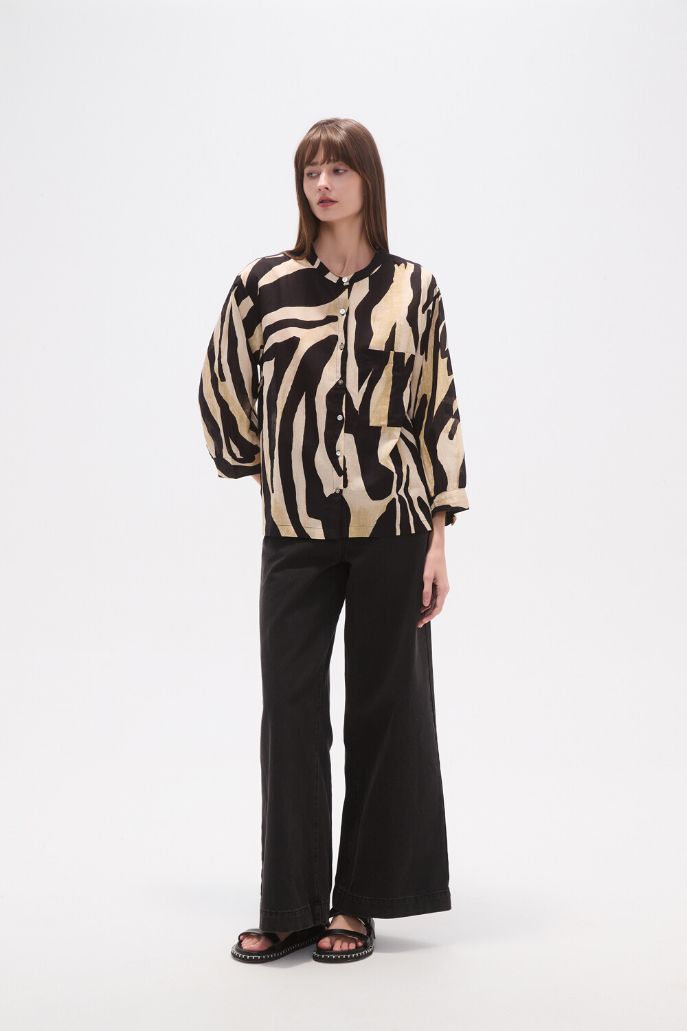 $ 883 Nuevos Camisa, aop, bolsillos, holgado, con botones y cuello mao