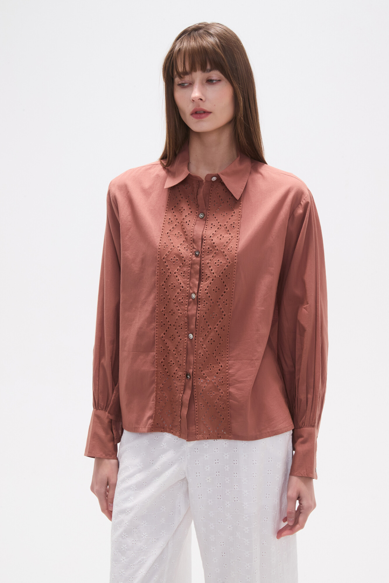 $ 883 Nuevos Camisa, broderie, holgado, con botones, con cinta y cuello camisa