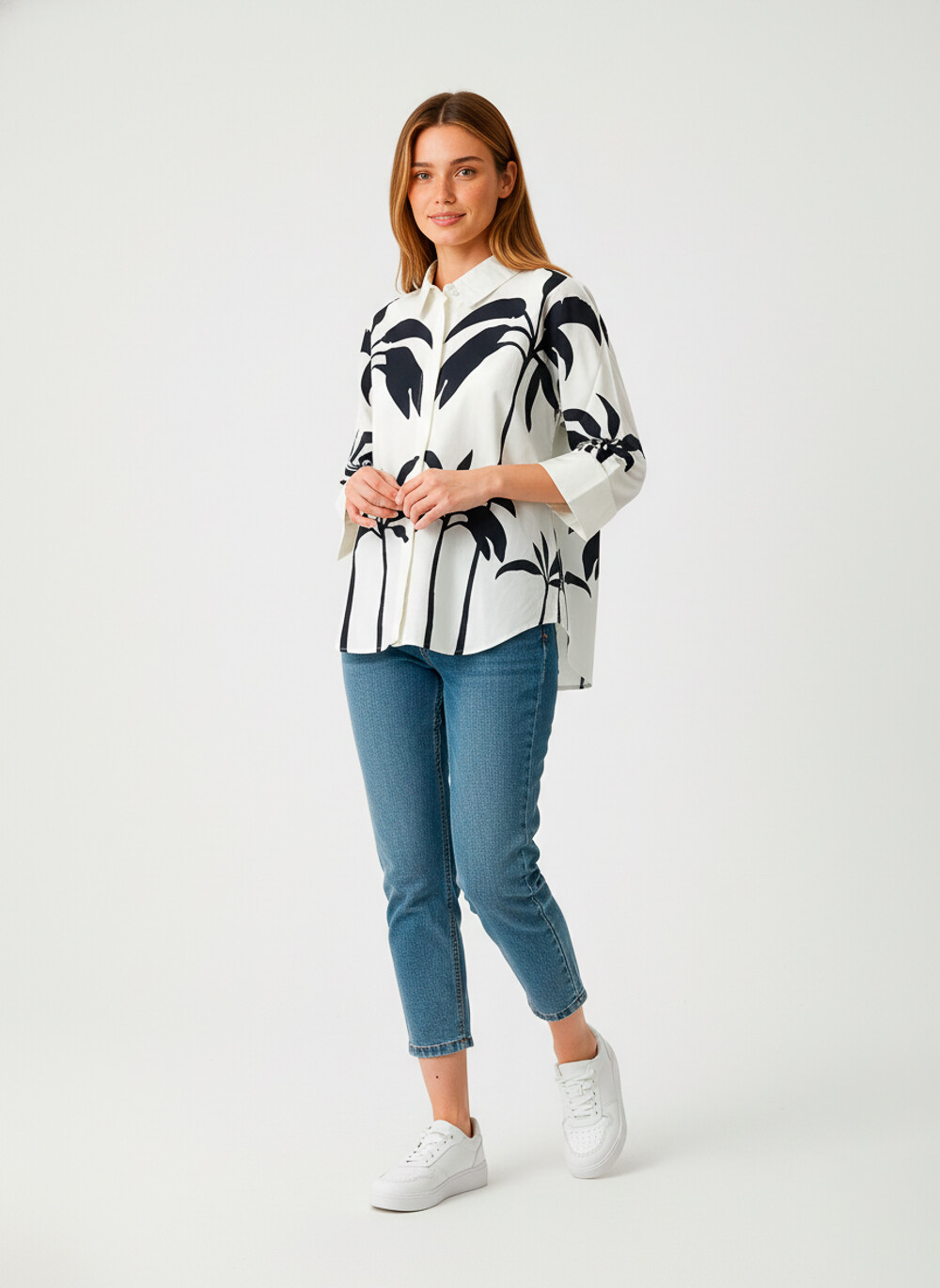 $ 1.019 Nuevos Camisa viscosa, estampado, holgado, con botones y cuello camisa