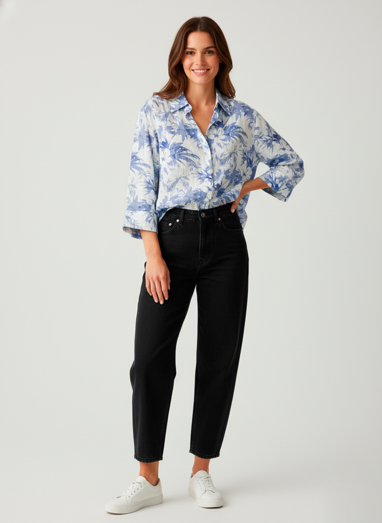 $ 787 Nuevos Camisa algodon, aop, ancho, con botones y cuello camisa