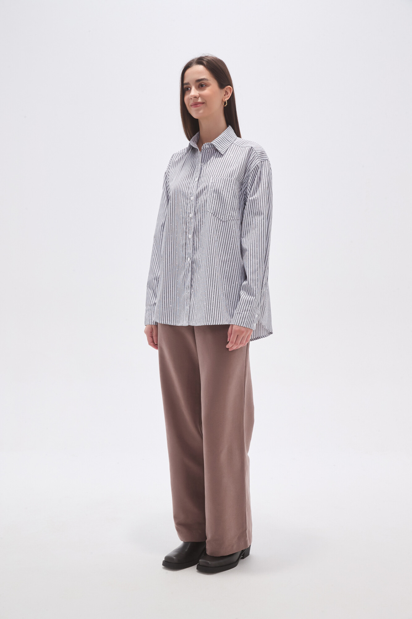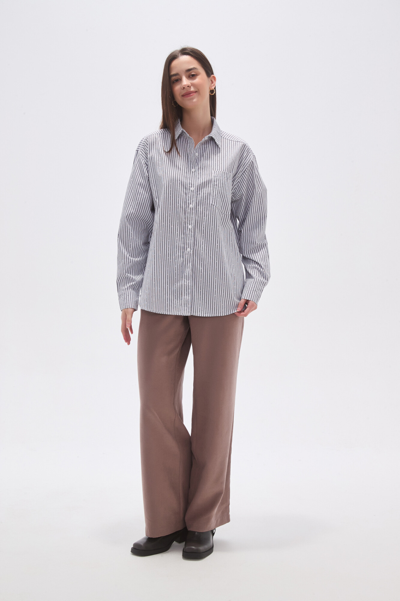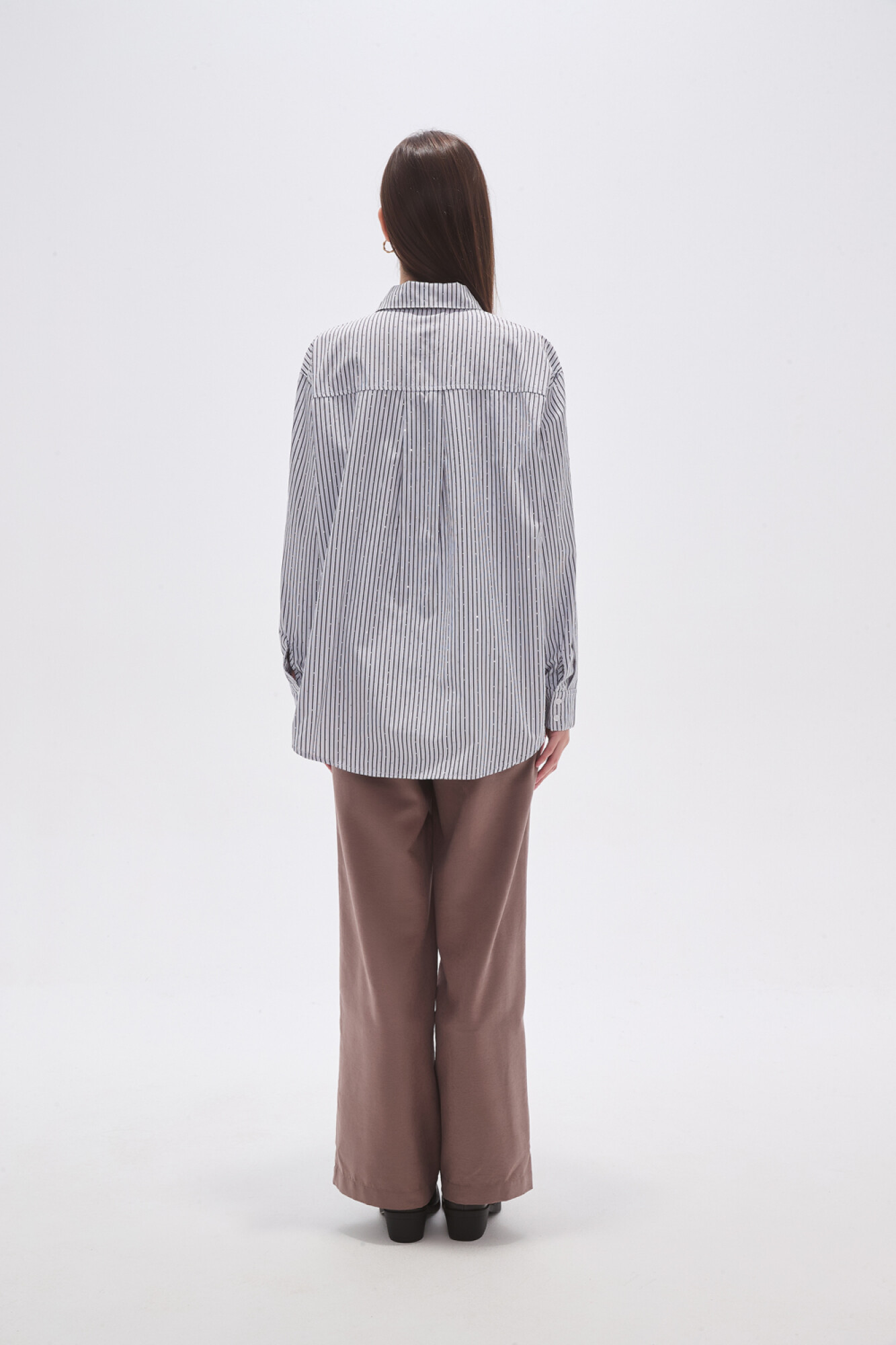 Nuevos Camisa algodon, rayas, strass, holgado, con botones y cuello camisa