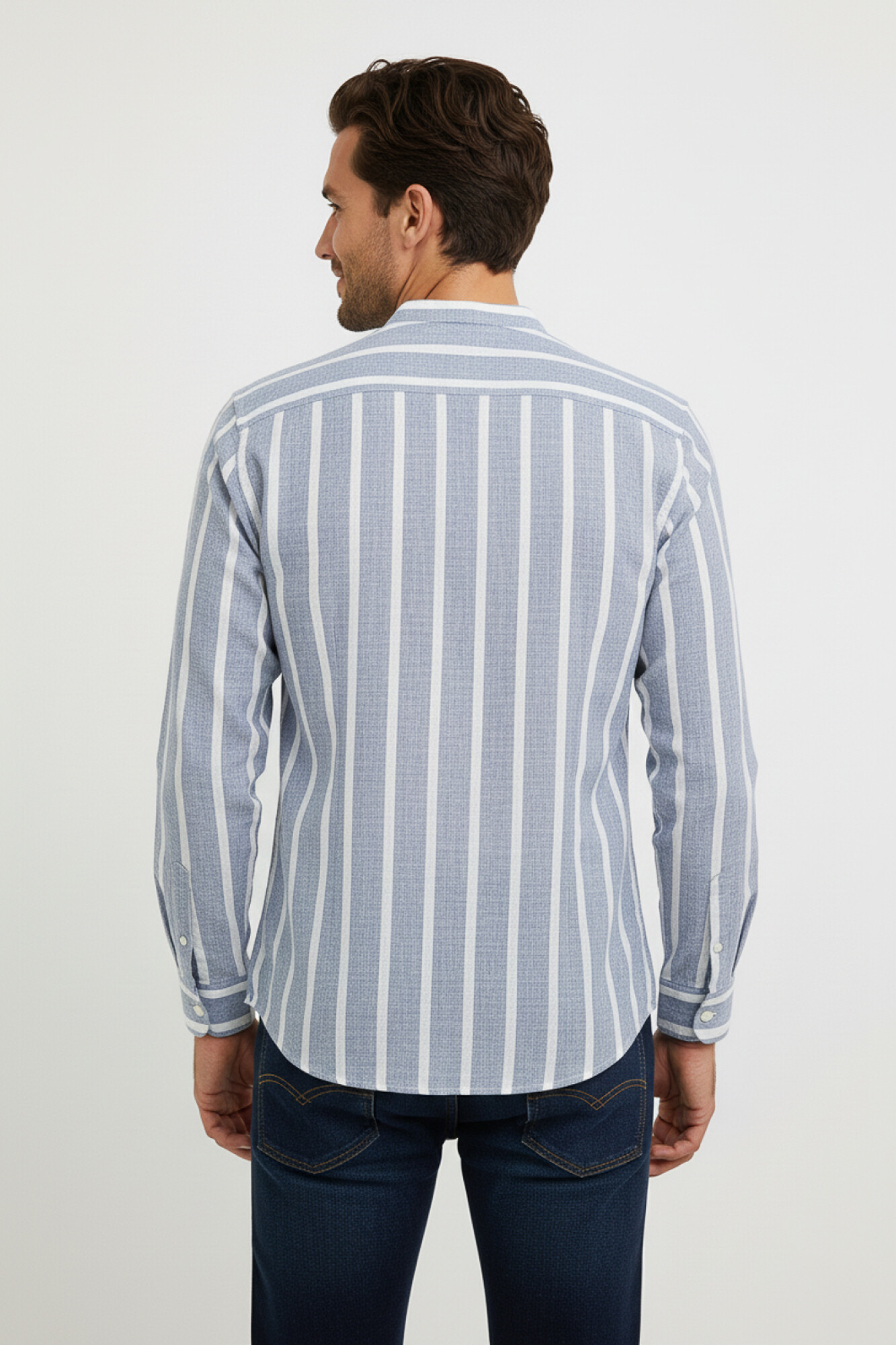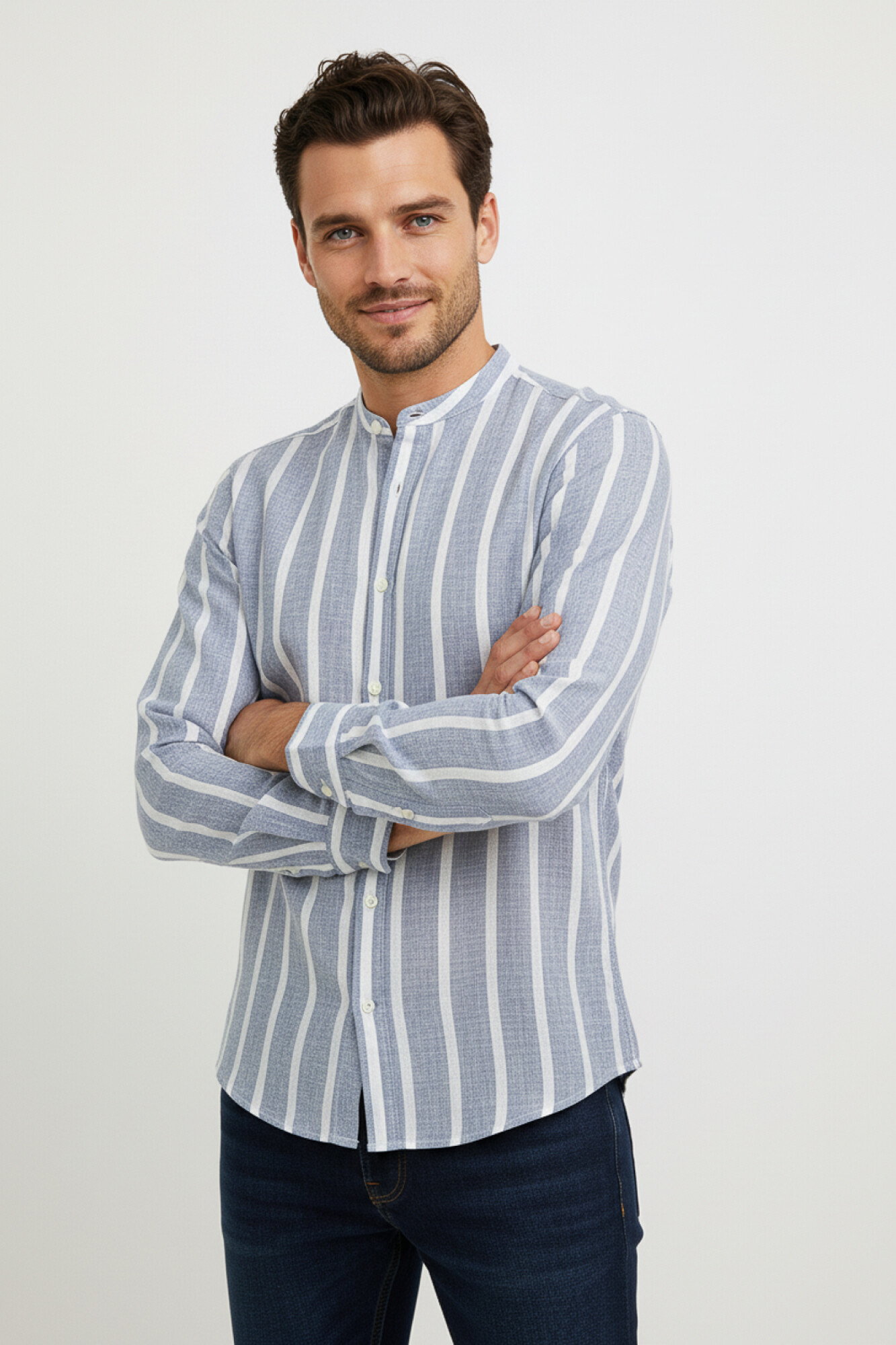 Nuevos Camisa algodon, rayas, holgado, con botones y cuello mao