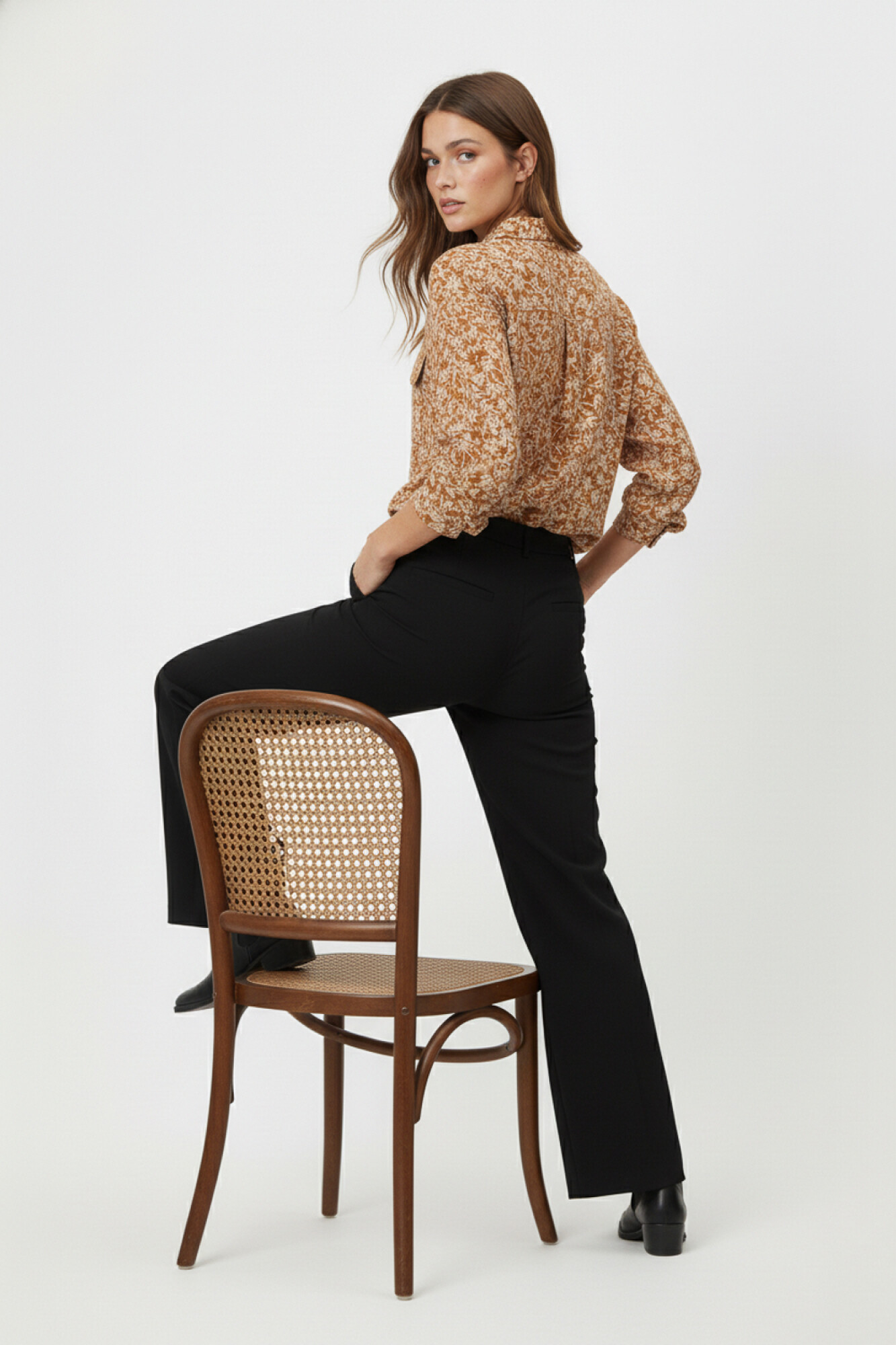 $ 299 Sale Camisa con estampado, viscosa, con bolsillo, estampado, al cuerpo, con botones y cuello camisa
