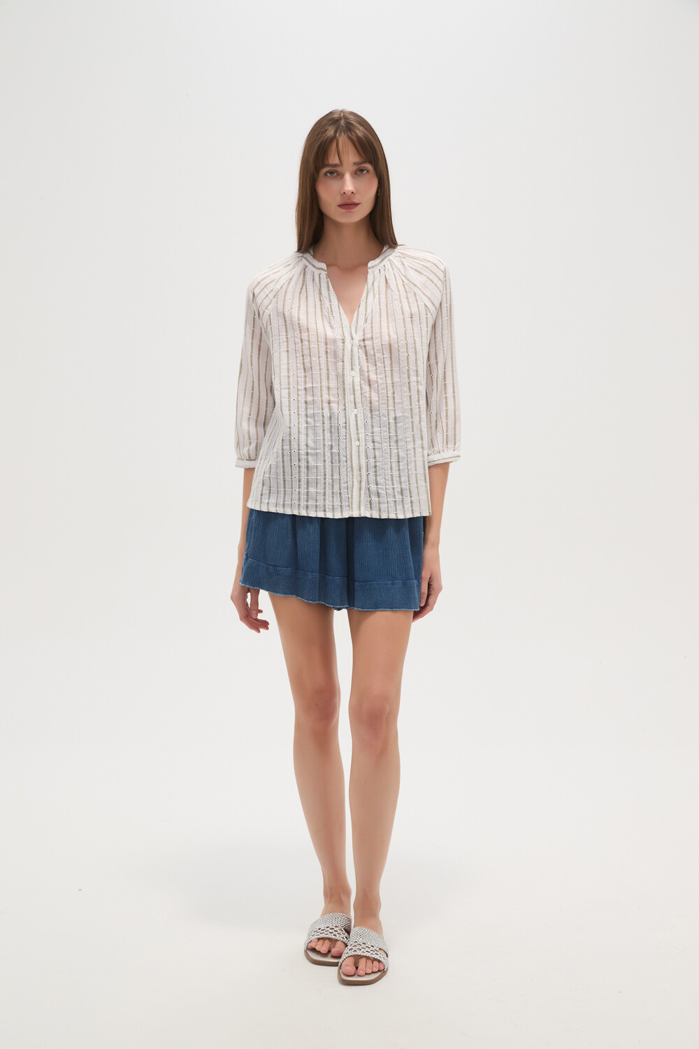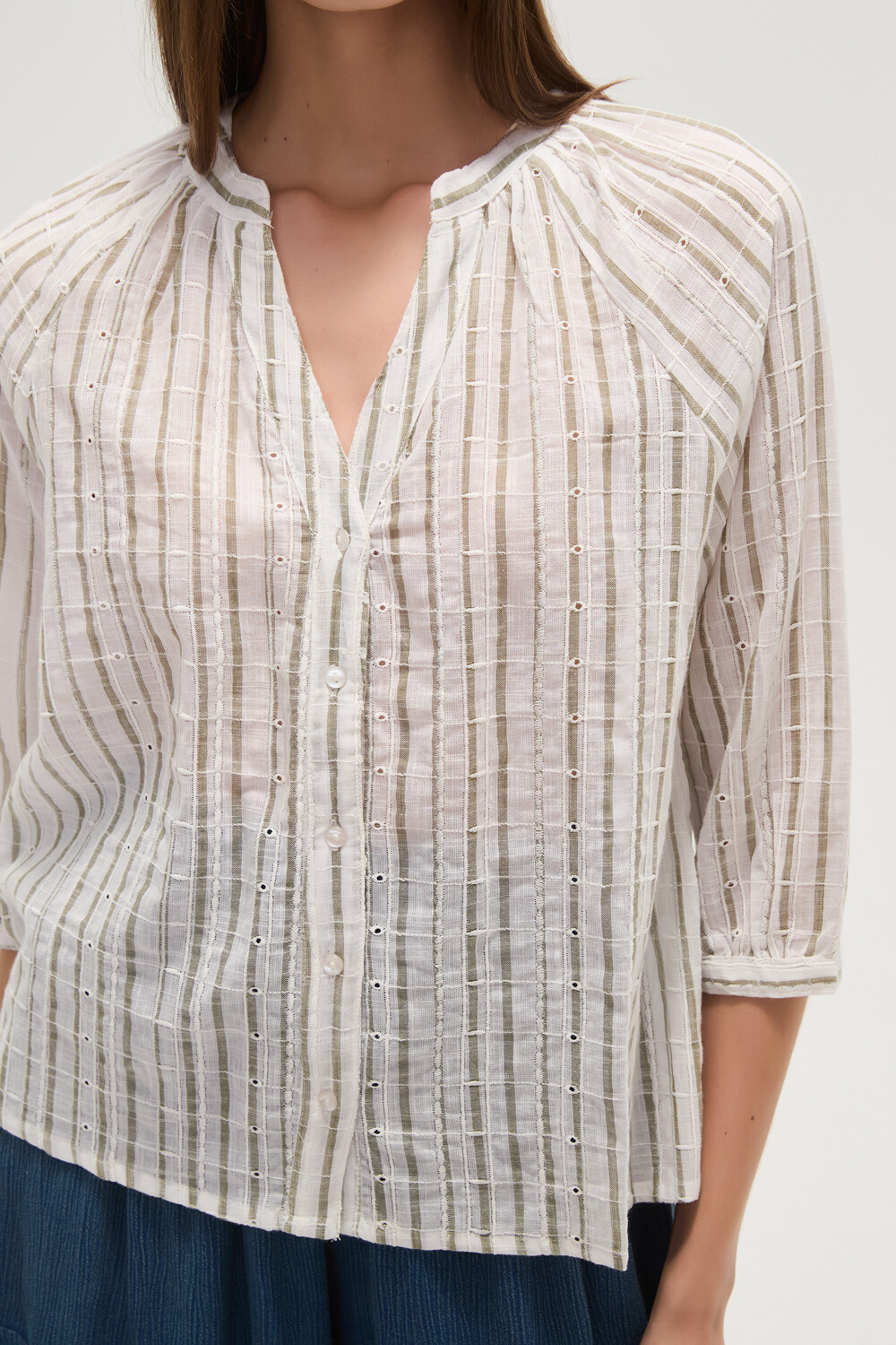 $ 951 Nuevos Camisa algodon, bordado, rayas, holgado, con botones y cuello en v