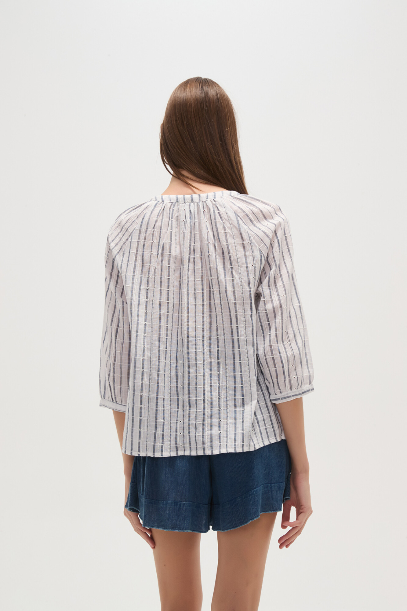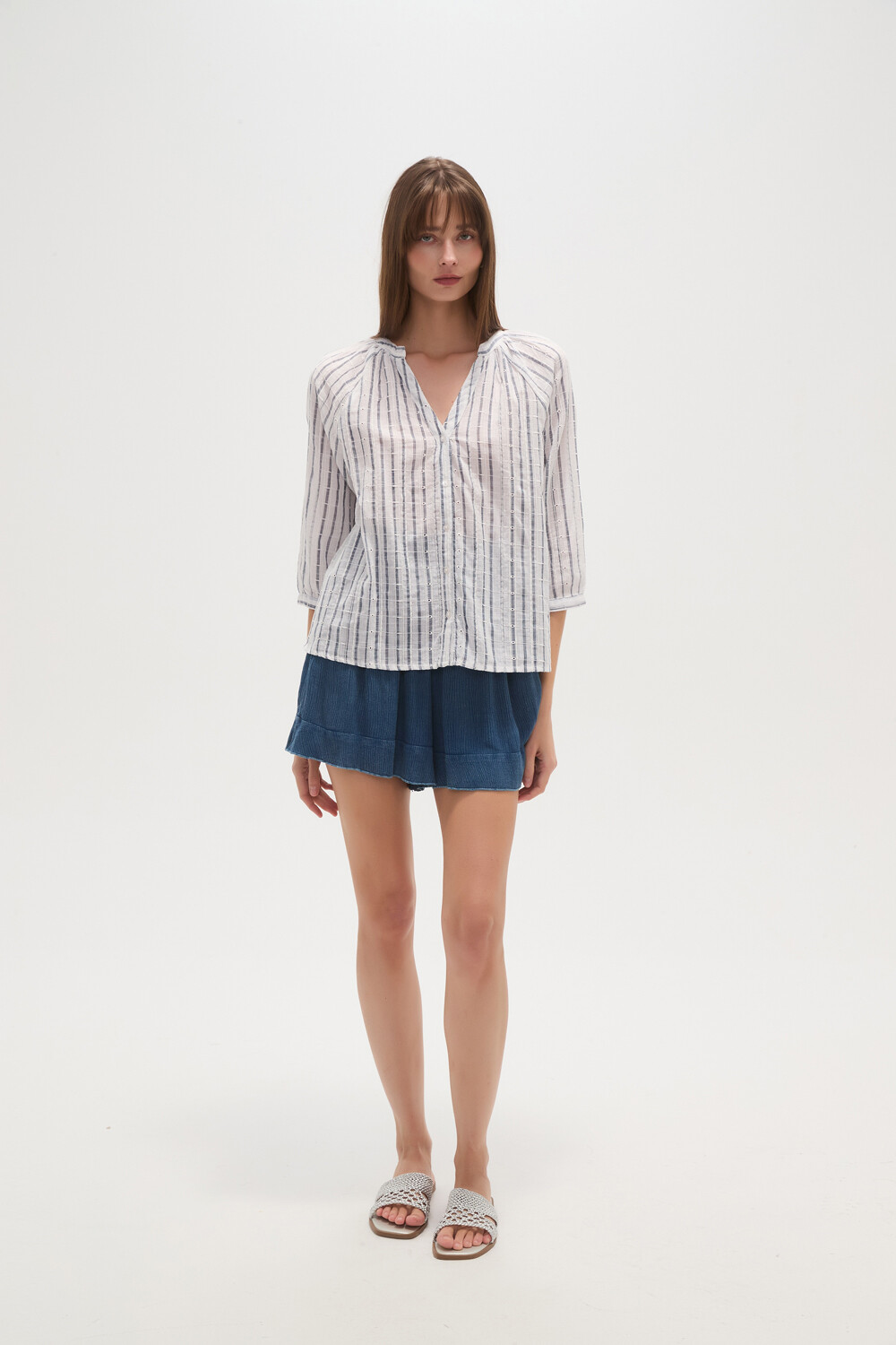 $ 951 Nuevos Camisa algodon, bordado, rayas, holgado, con botones y cuello en v