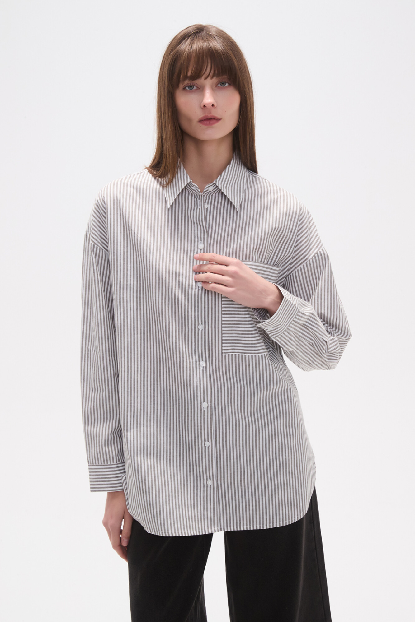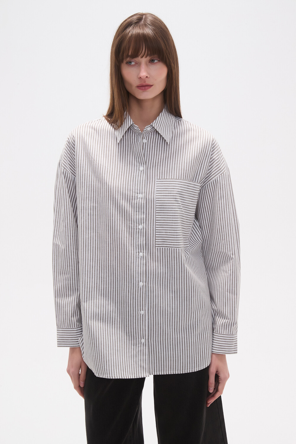 $ 779 Nuevos Recibilo en Camisa algodon, bolsillos, rayas, holgado, con botones y cuello camisa