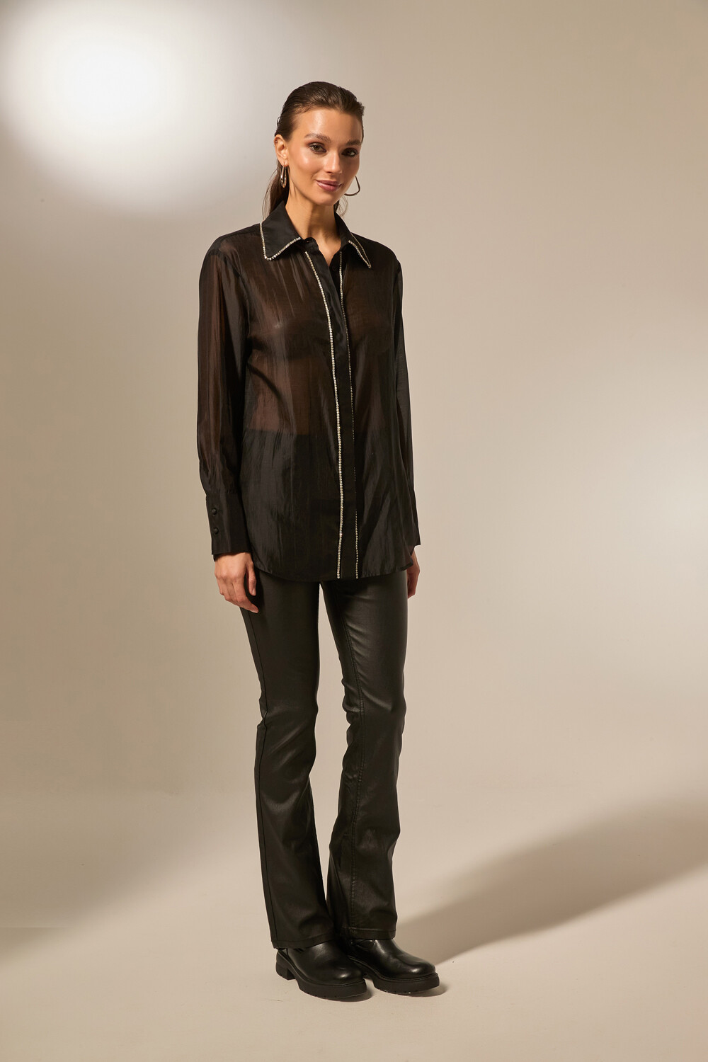 Nuevos Camisa lyocell, strass, con botones y cuello camisa