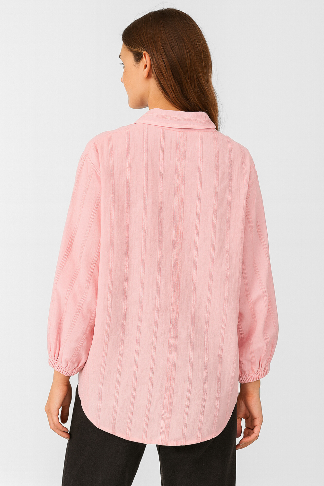 Nuevos Camisa lino + algodon, rayas, holgado, con botones, con elastico y cuello camisa