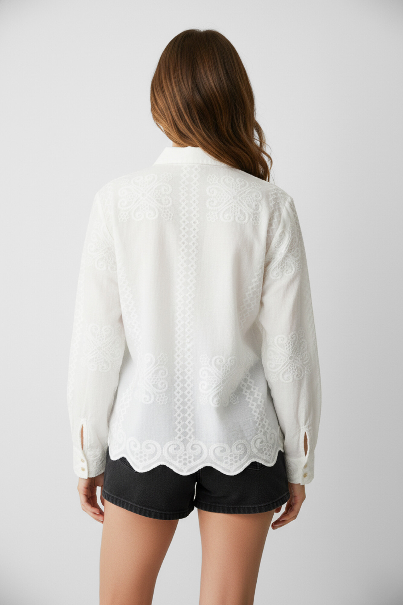 Nuevos Recibilo en Camisa algodon, broderie, holgado, con botones y cuello camisa