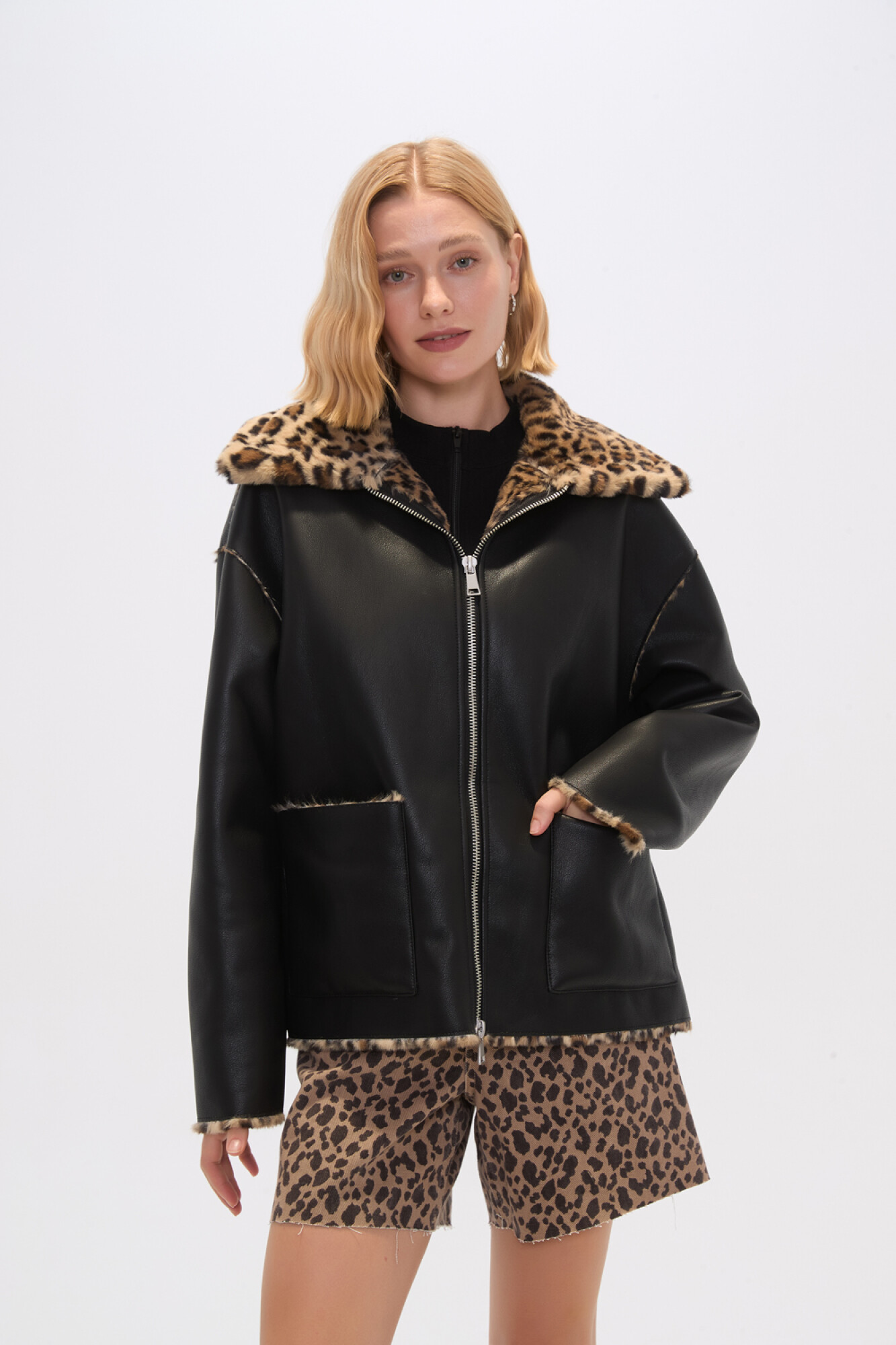 Nuevos Recibilo en Campera manga larga de eco-cuero, bolsillos y piel