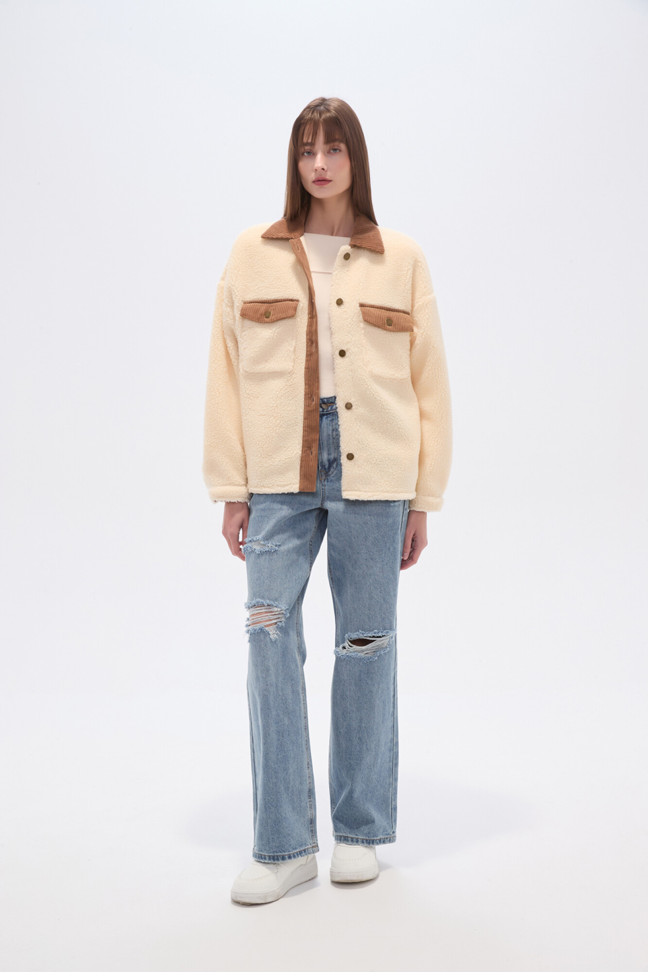 Nuevos Campera manga larga de poliester, bolsillos y corderito
