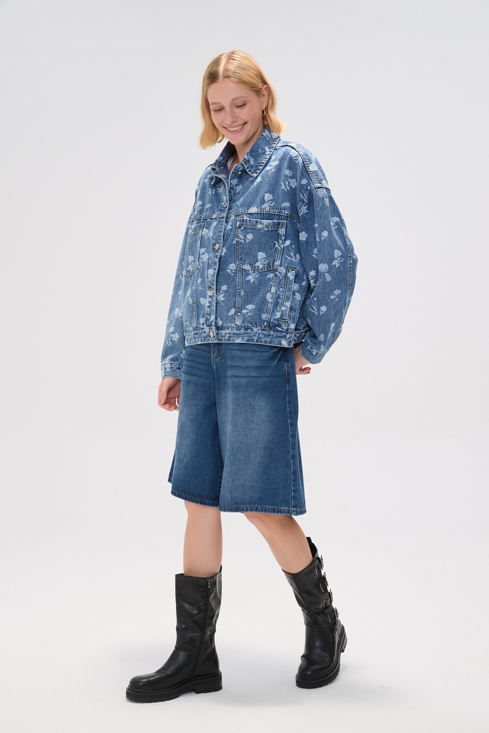 $ 1.495 Nuevos Campera manga larga de jean, bolsillos y estampado
