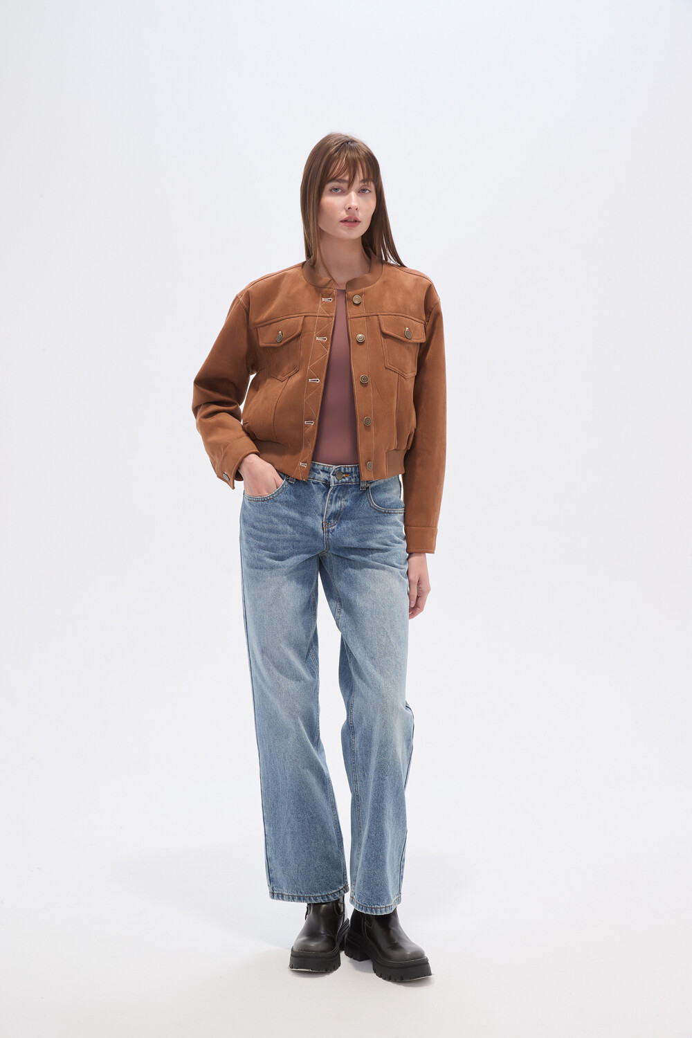 $ 1.699 Nuevos Campera manga larga de suede y bolsillos
