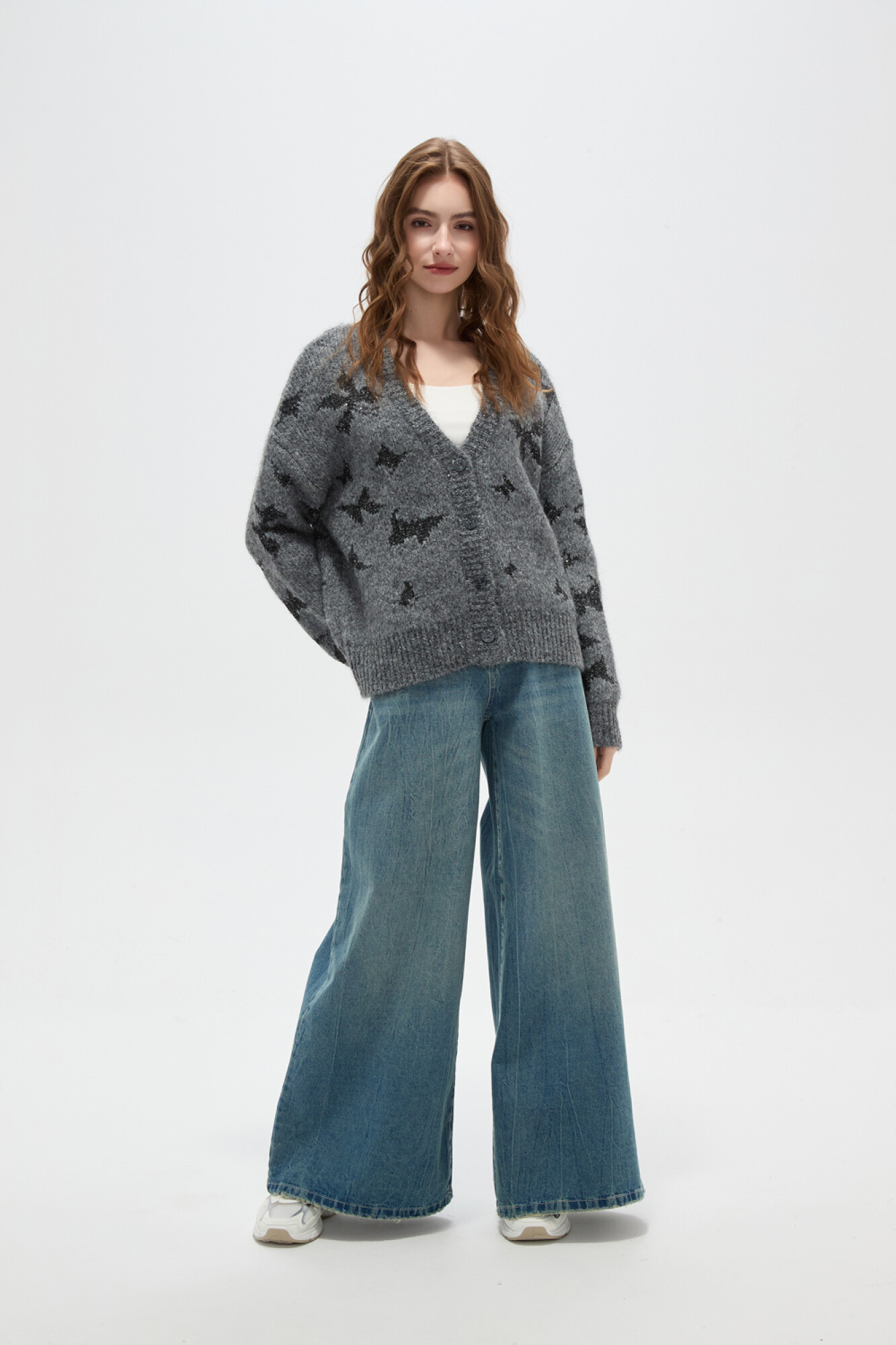$ 959 Nuevos Cardigan poliester, jaquard, holgado, con botones y cuello en v