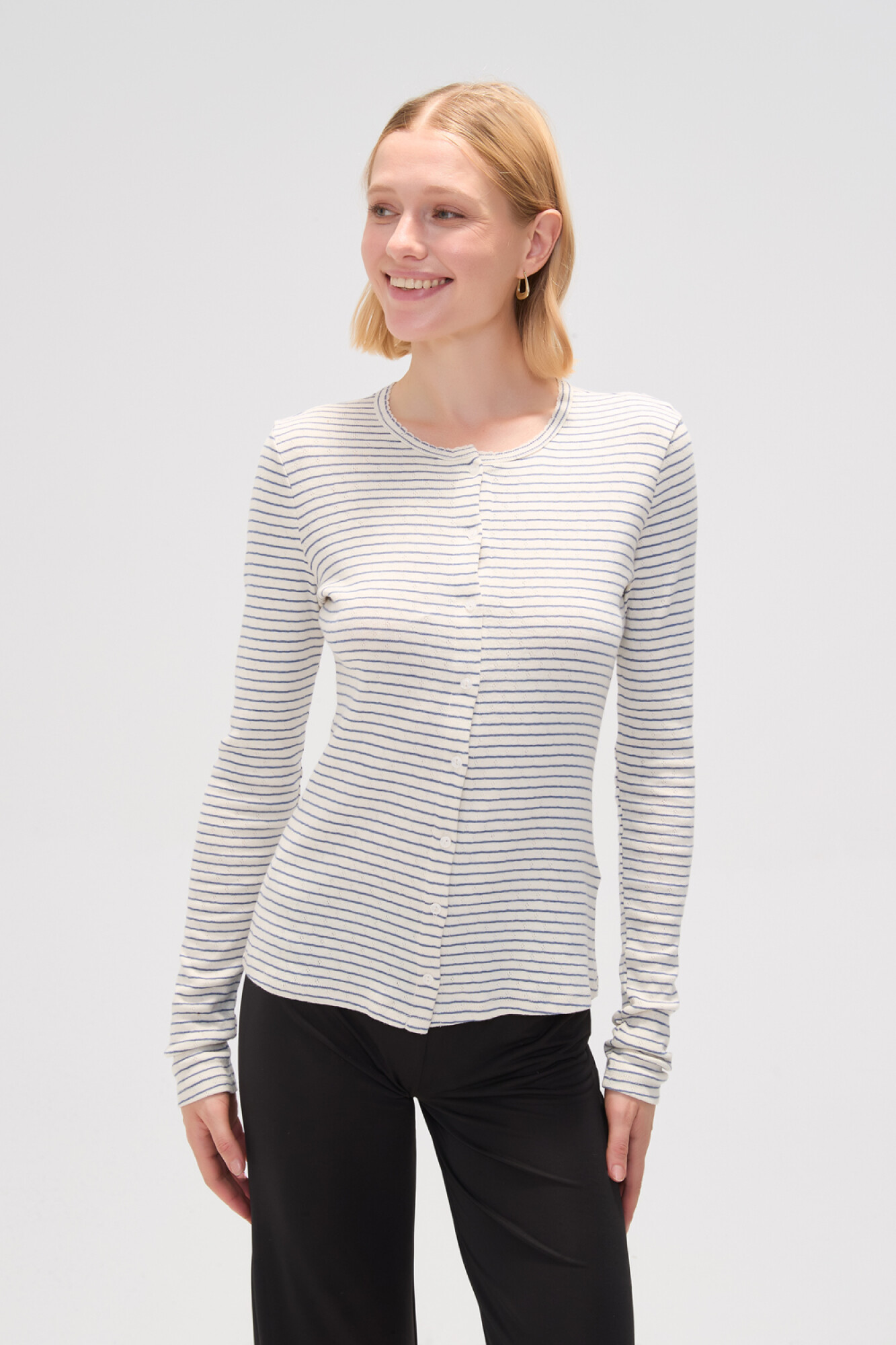 Nuevos Recibilo en  Cardigan algodon, calado, con botones y cuello a la base