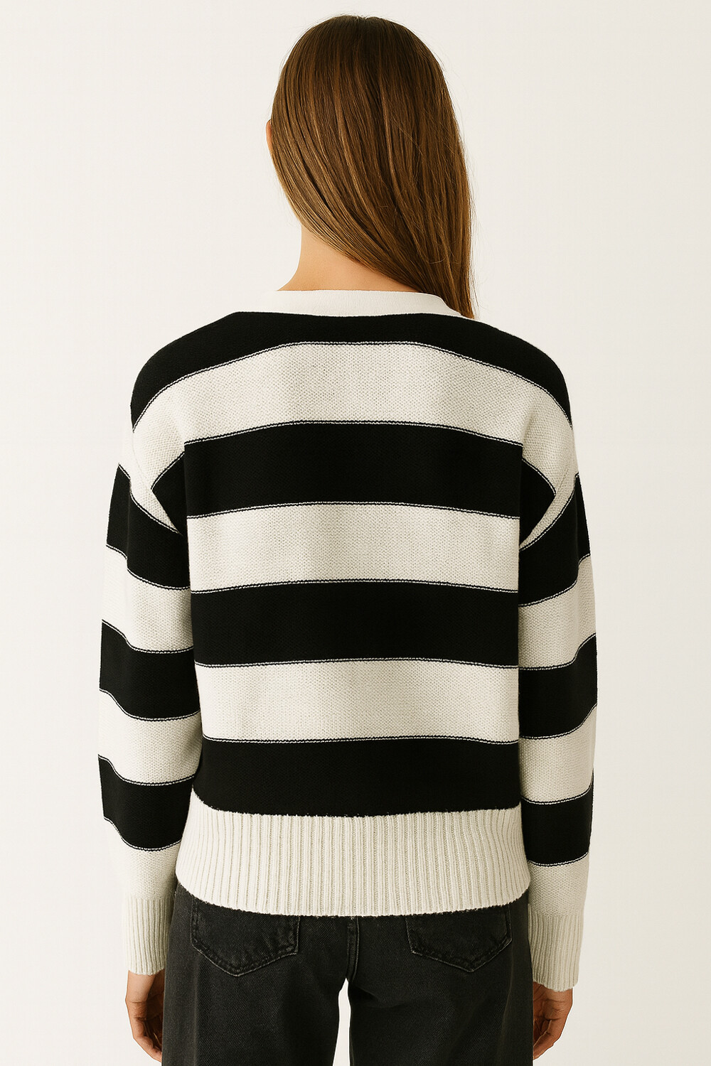 $ 883 Nuevos Cardigan algodon, rayas, holgado, con boton y cuello en v