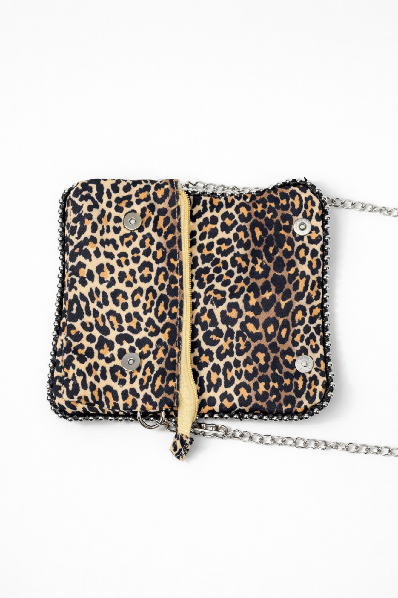 $ 779 Nuevos Recibilo en Cartera con diseño animal print, correa de cadena. Medidas: 12x19,5cm