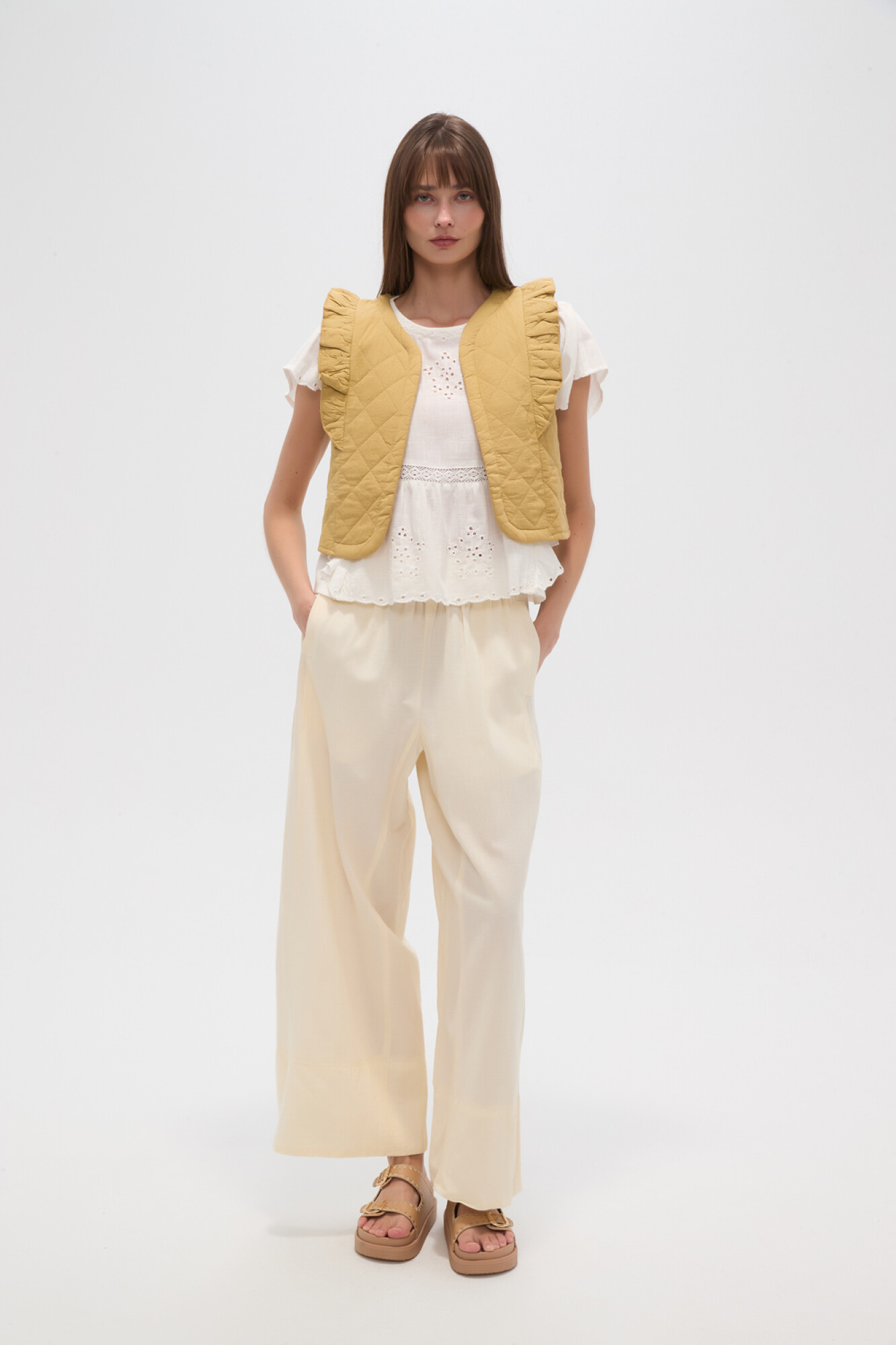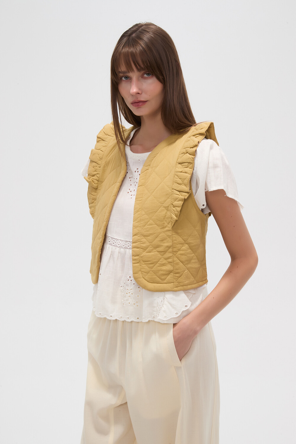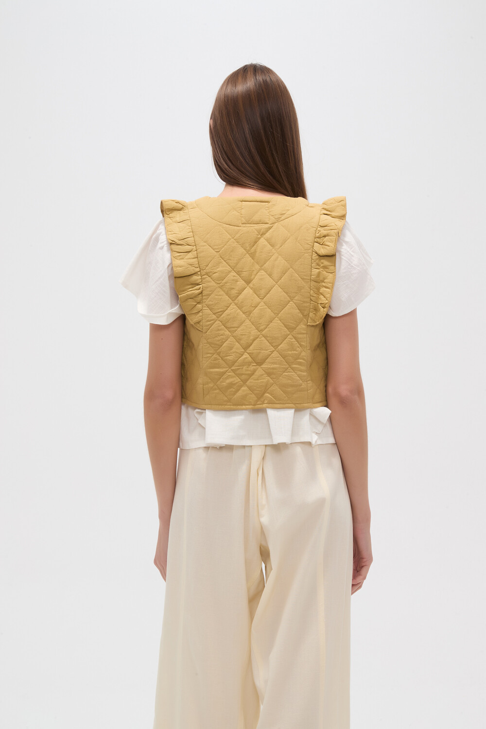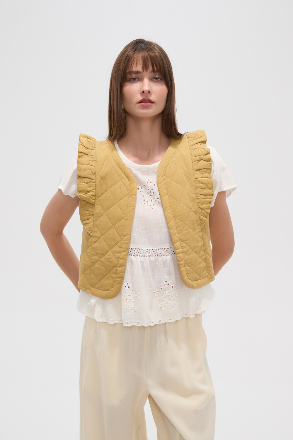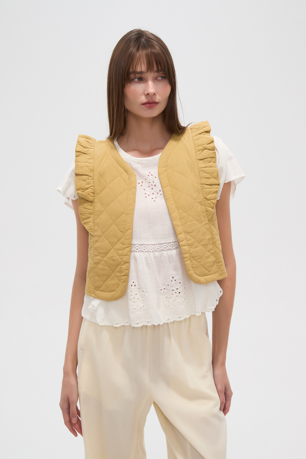 Nuevos Chaleco manga corta de algodon, capitoneado y volados