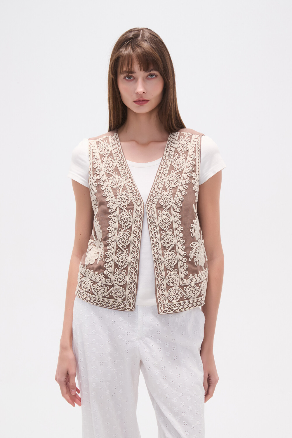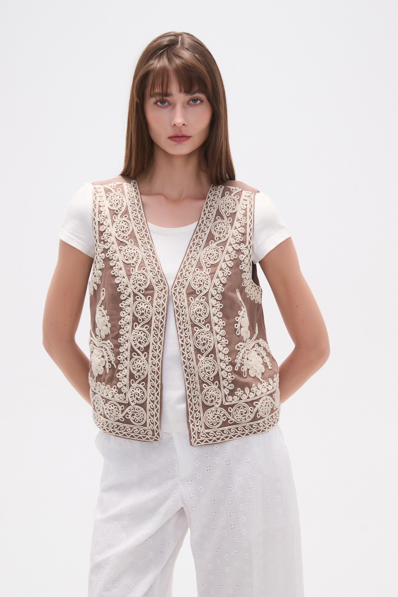 $ 899 Nuevos Chaleco sin mangas de viscosa y bordado