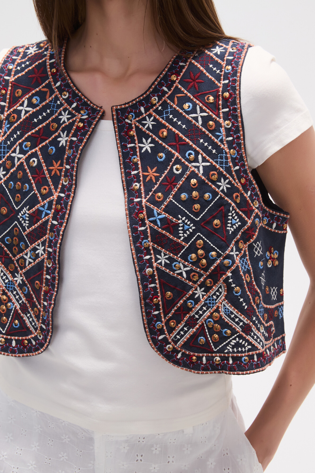 $ 959 Nuevos Chaleco sin mangas de algodon y bordado